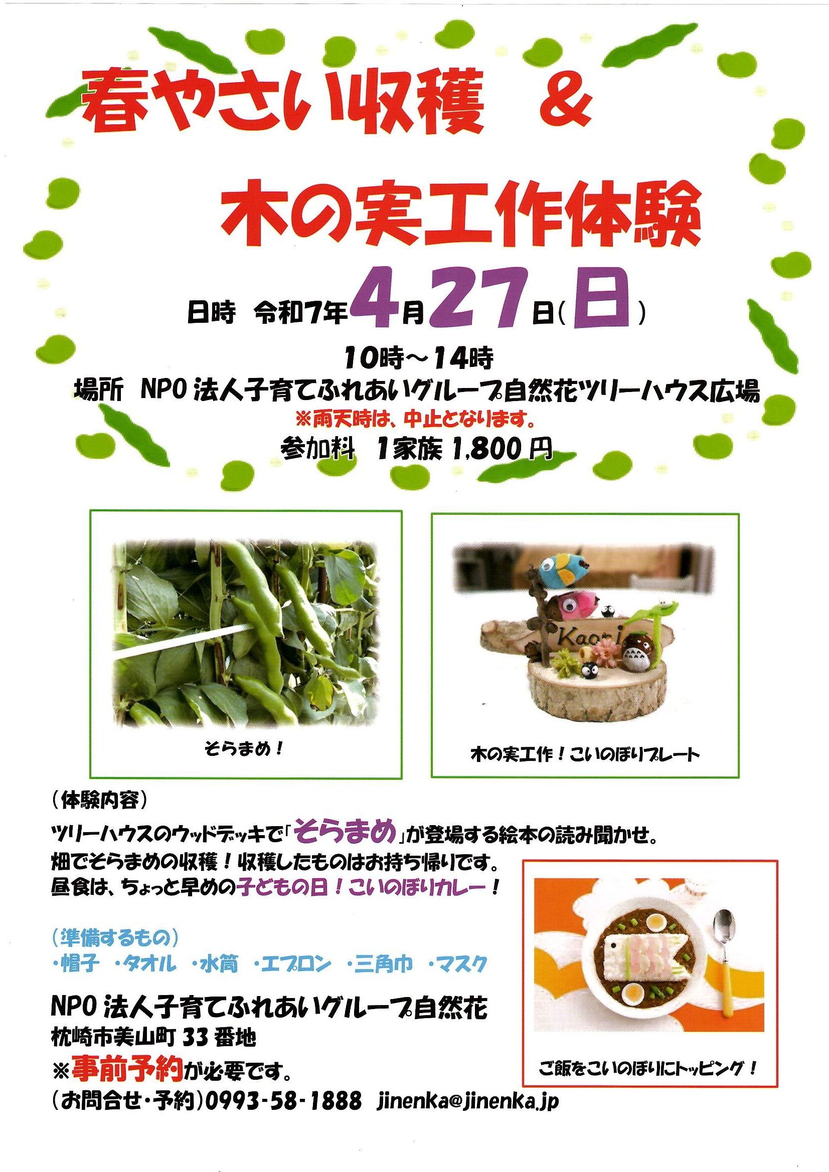 4月27日(日)10時~14時「春やさい収穫&木の実工作体験」を行います。