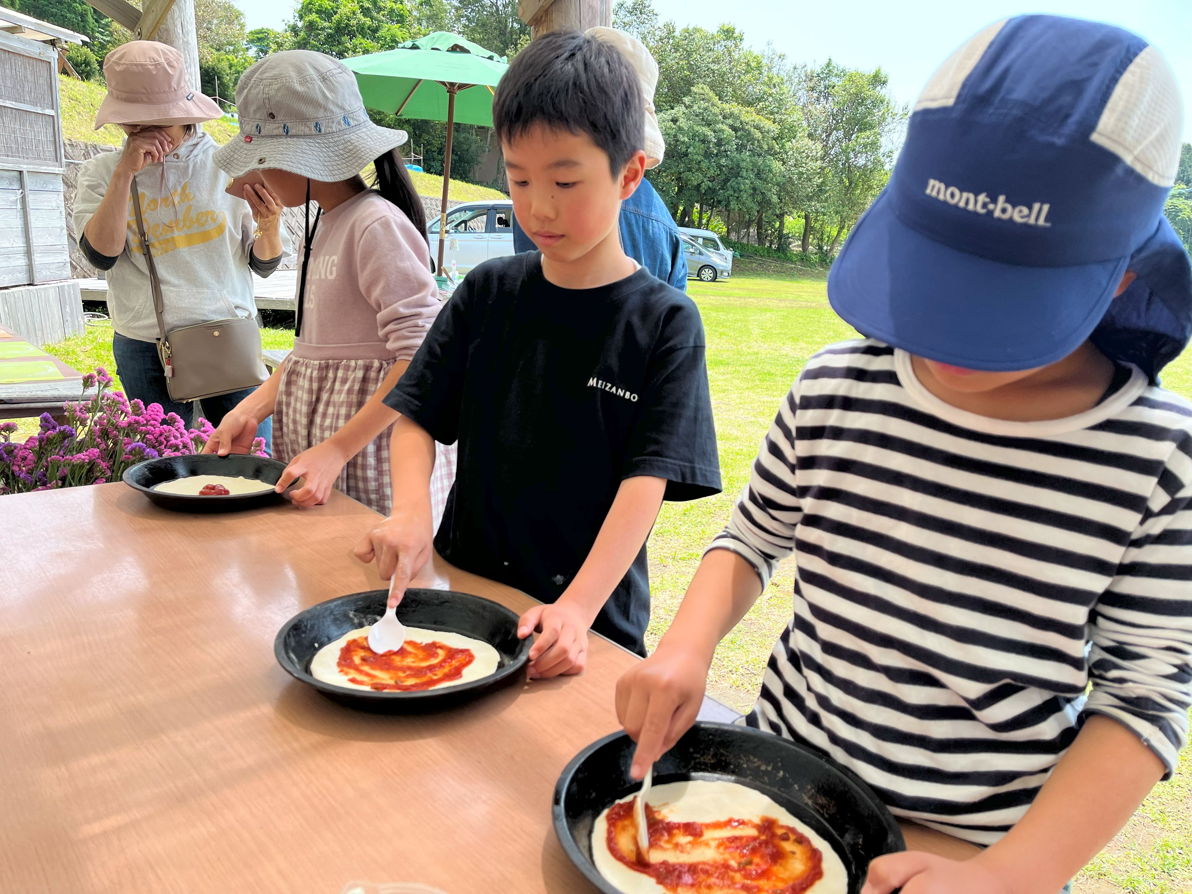 3日は、ツリーハウス広場にてピザ焼き体験と工作体験、4日は交流・体験スペースゆるりこみせにて工作体験をしました。