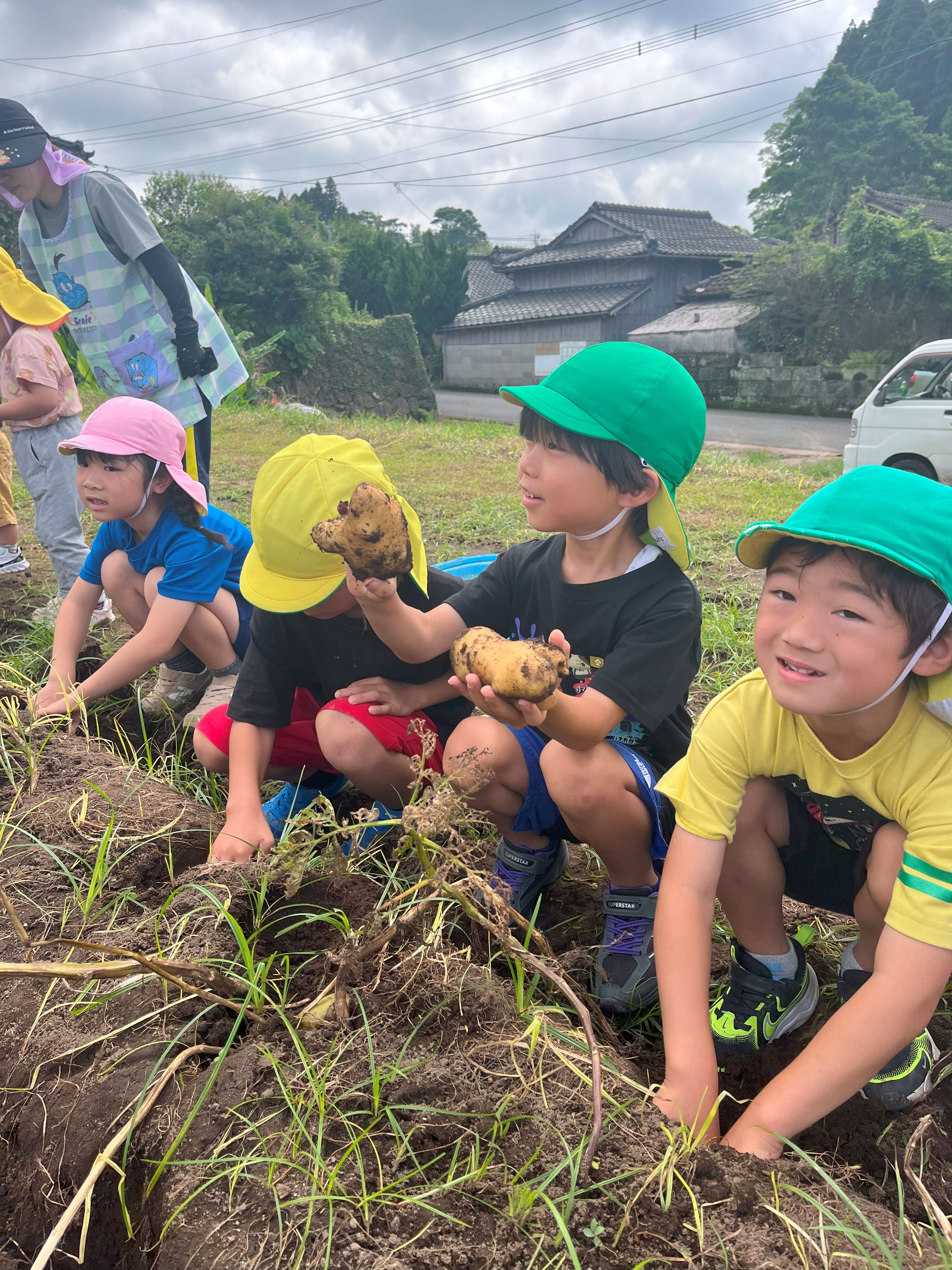 じゃがいも収穫&雨散歩したよ!(枕崎幼稚園年長さん・年中さん) >