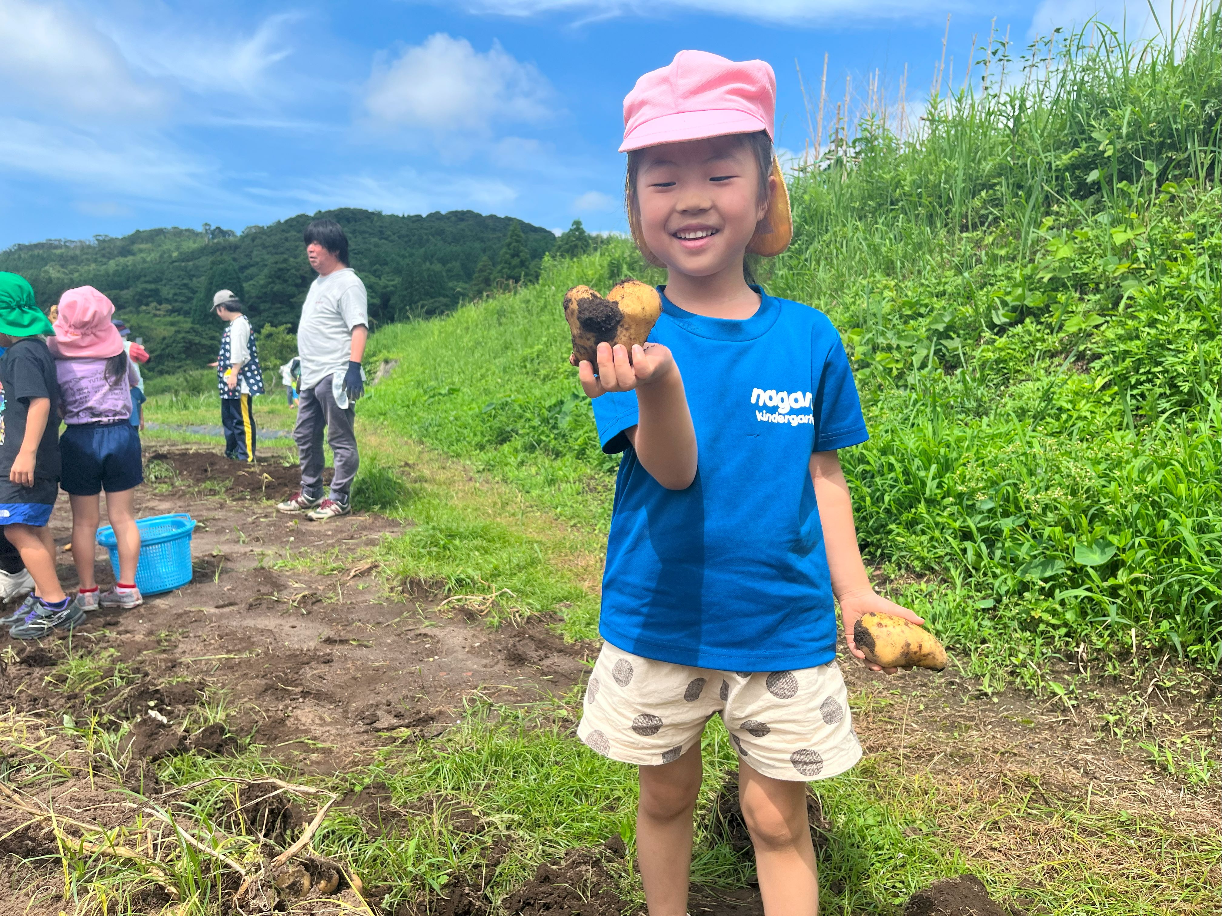 6月13日(金)、長野幼稚園のみんなが、自然花でジャガイモ収穫を行いました。