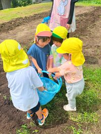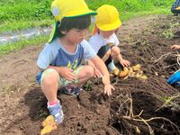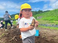 梅雨の中休みでとってもいいお天気の中、年長さんから年少さんまでみんなでジャガイモを収穫しました(^^)