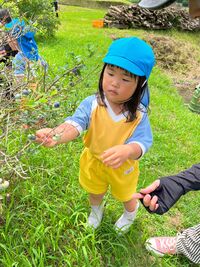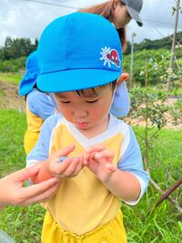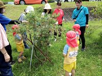 ツリーハウス広場の周辺をお散歩して最後にブルーベリー収穫をしました。まだ収穫できるブルーベリーは少しでしたが、梅雨あけして太陽の光をたくさん浴びると、甘くておいしいブルーベリーになります(^^)