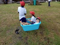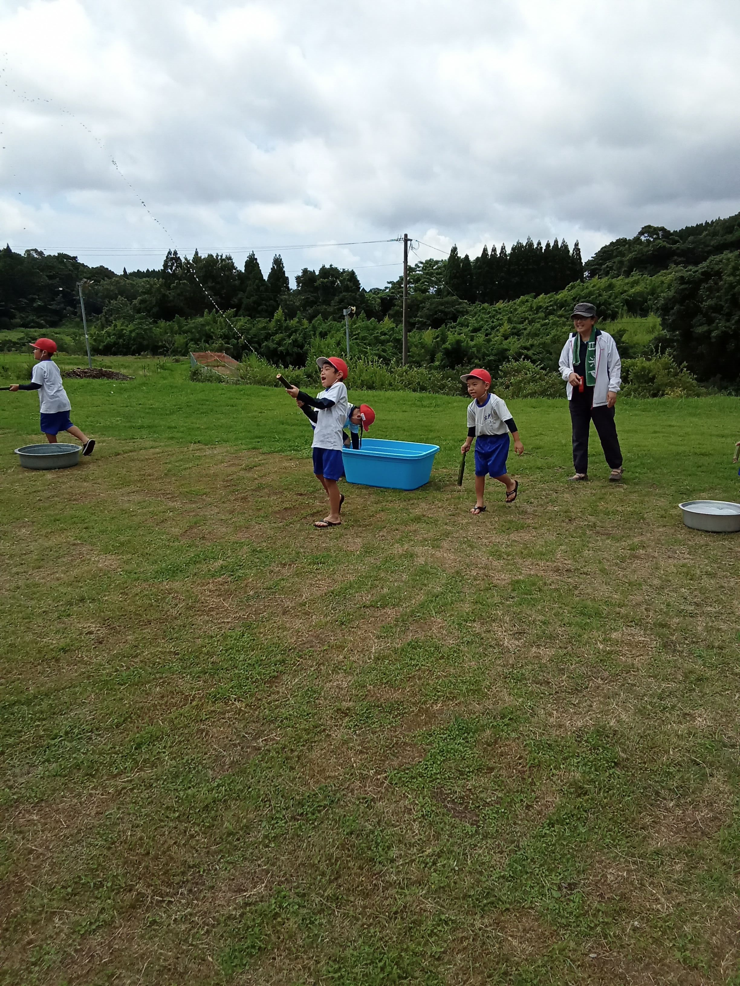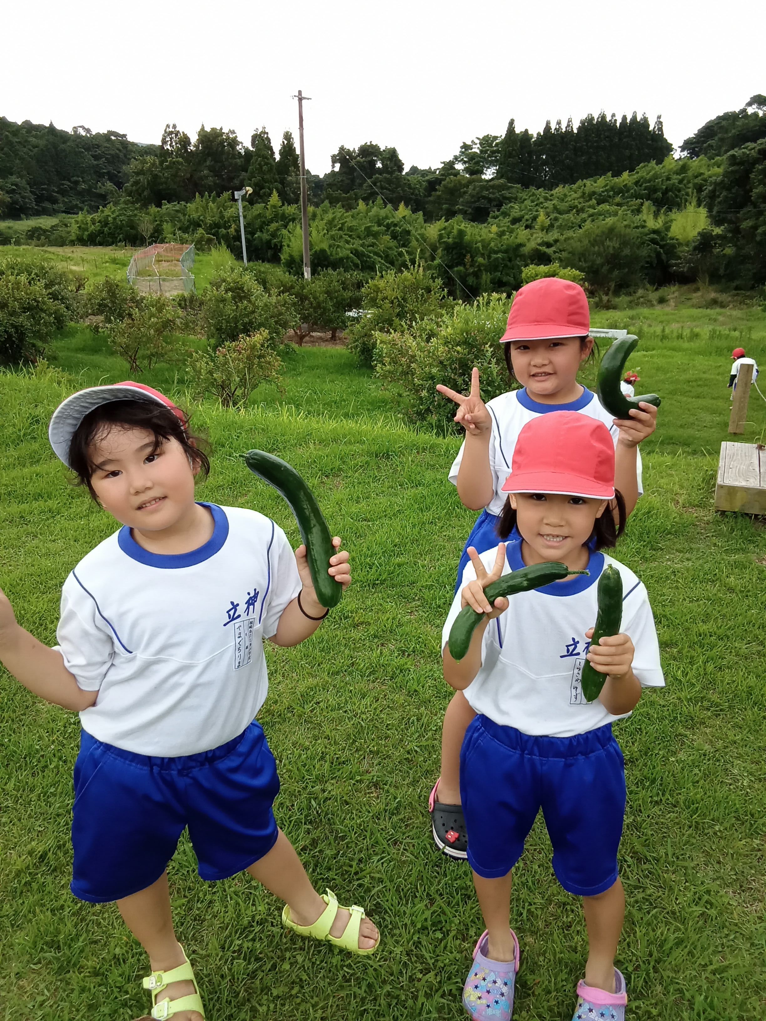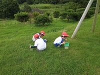 広場遊びや虫とり、水鉄砲づくり、水遊び等の体験をしました。自然花の畑にできていたキュウリやブルーベリーの収穫もしました!とても暑い日でしたが、みんなが水遊びをした後は、広場も涼しくなりました(^^)