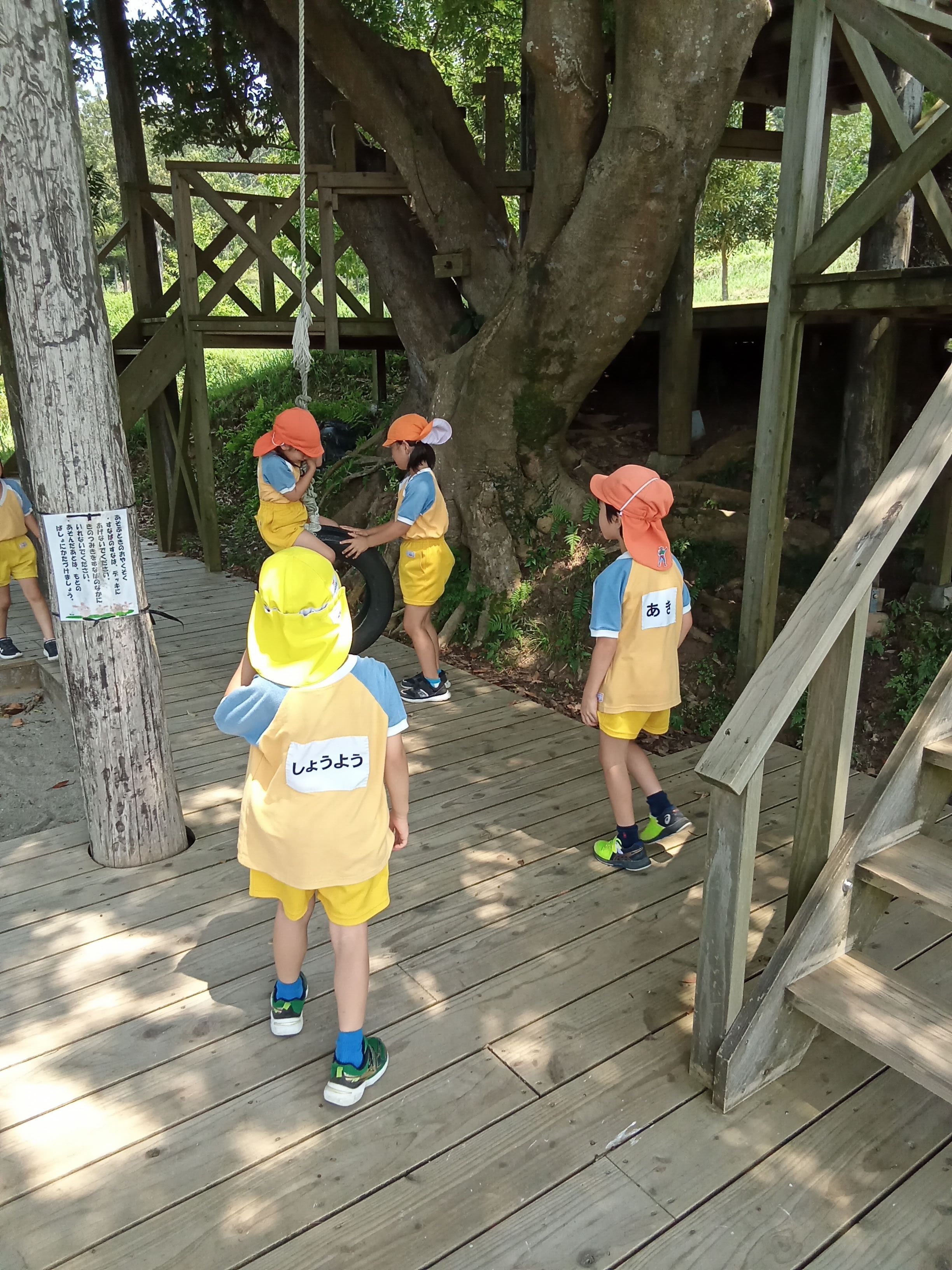 収穫した後は、ツリーハウスの木陰で遊んでいます。