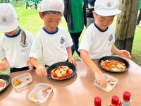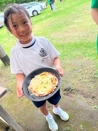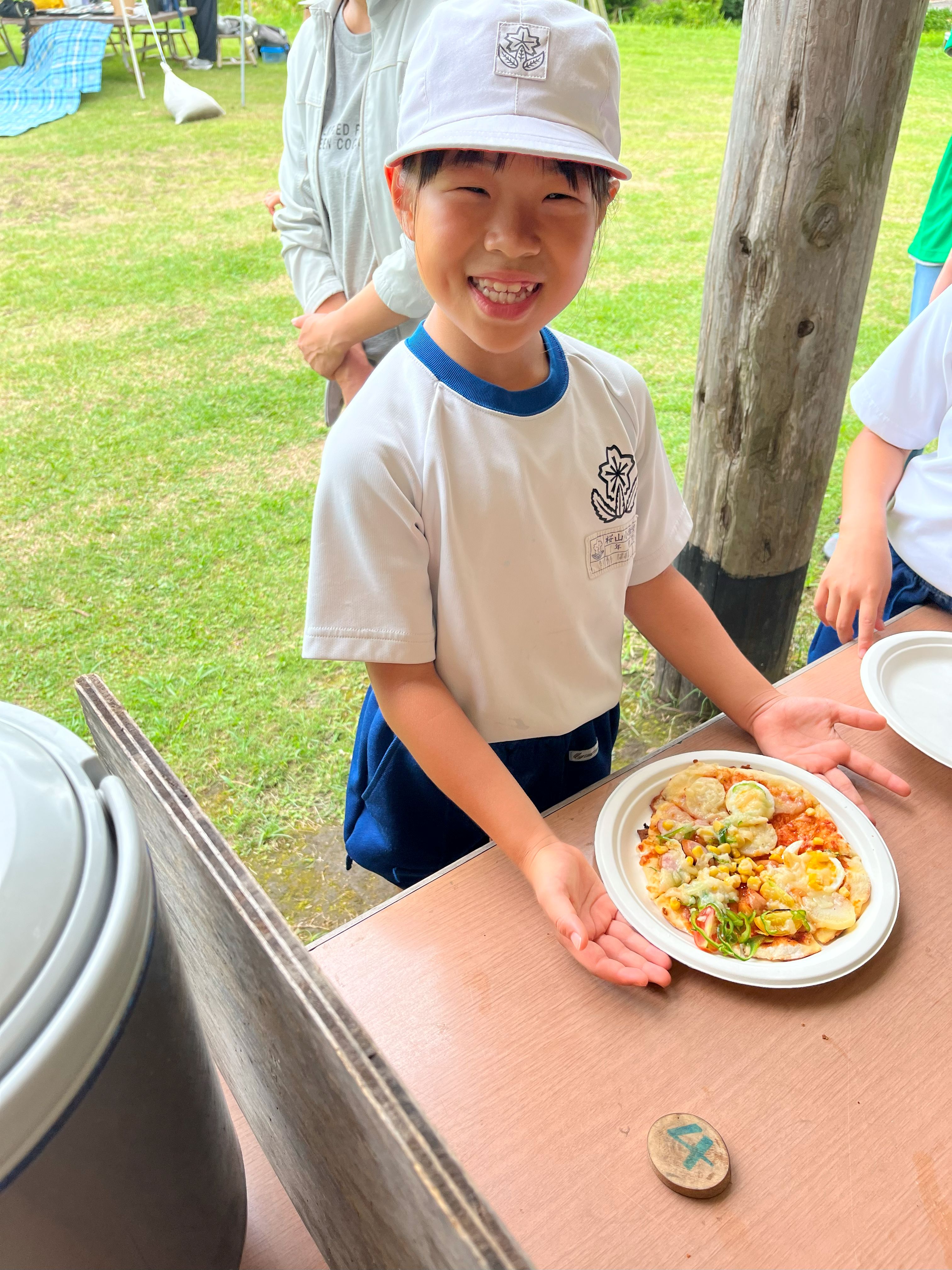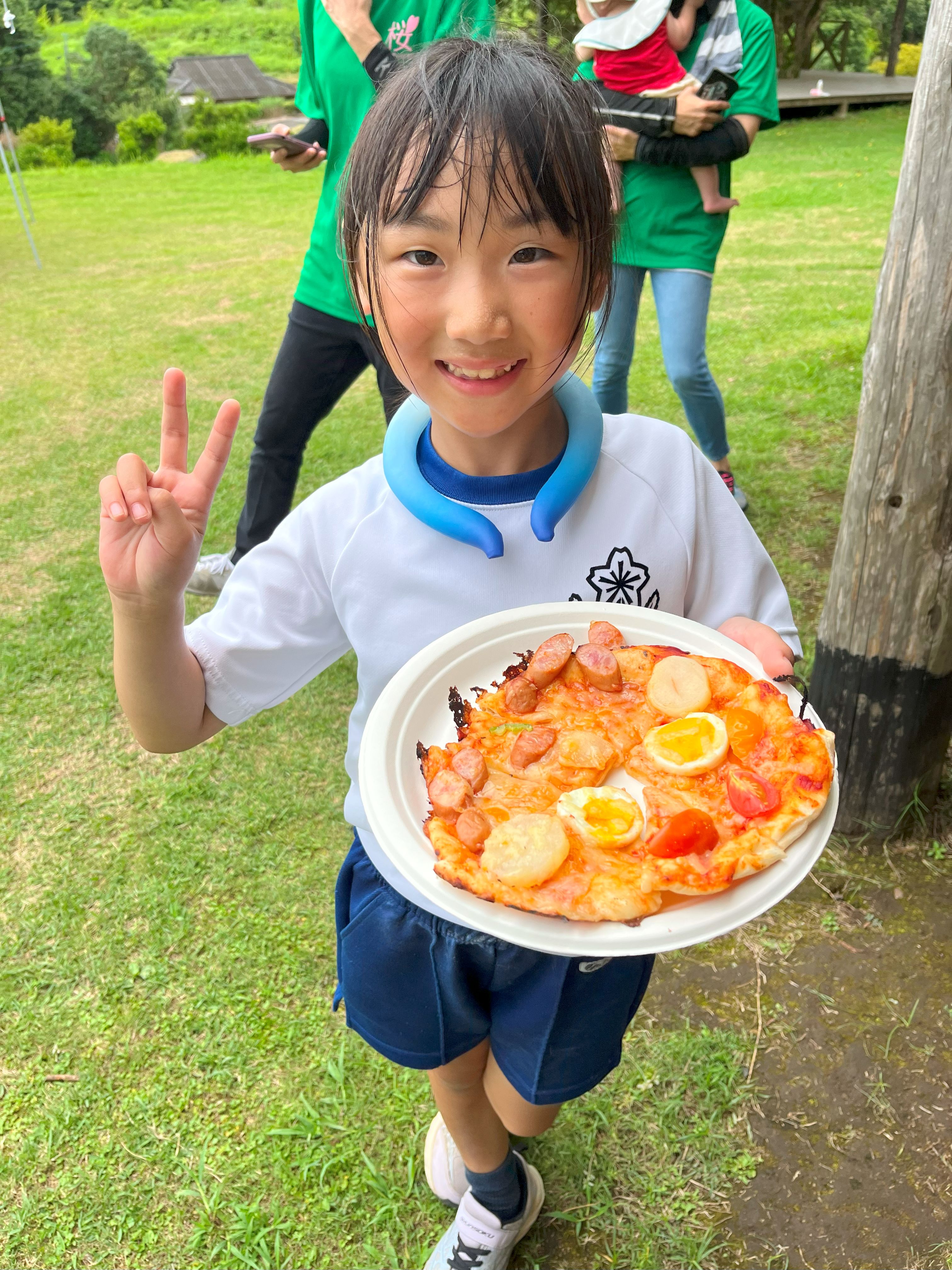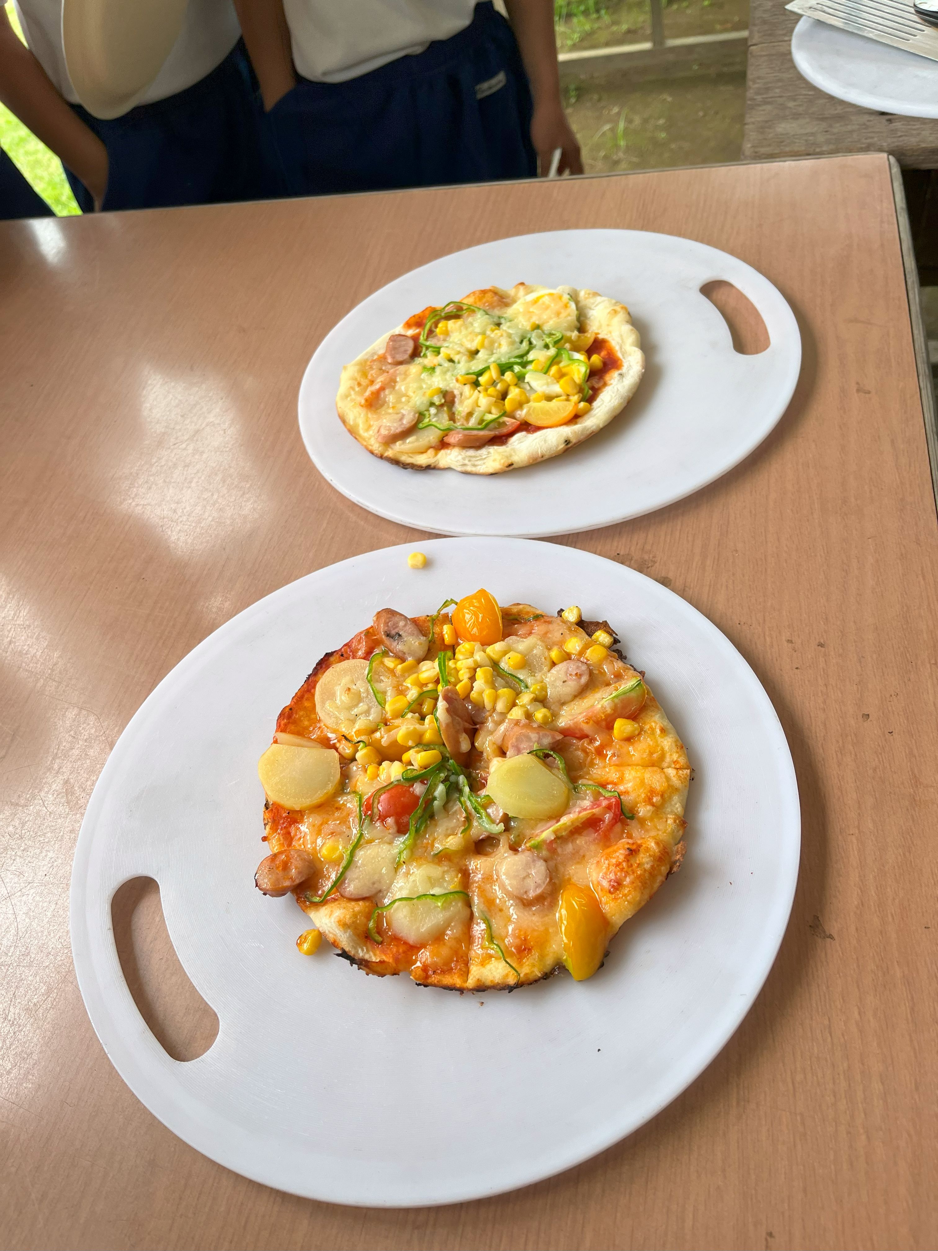 自然花に着いた時には、お腹が空いていて、まずはピザ焼き体験をしました。焼きたてピザをお父さん、お母さんと一緒に食べました(^^)