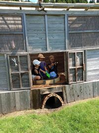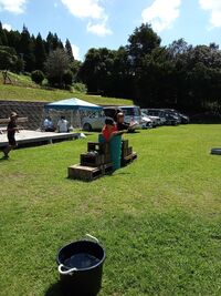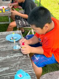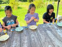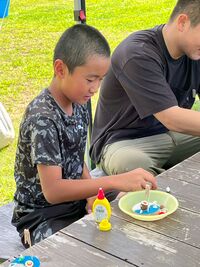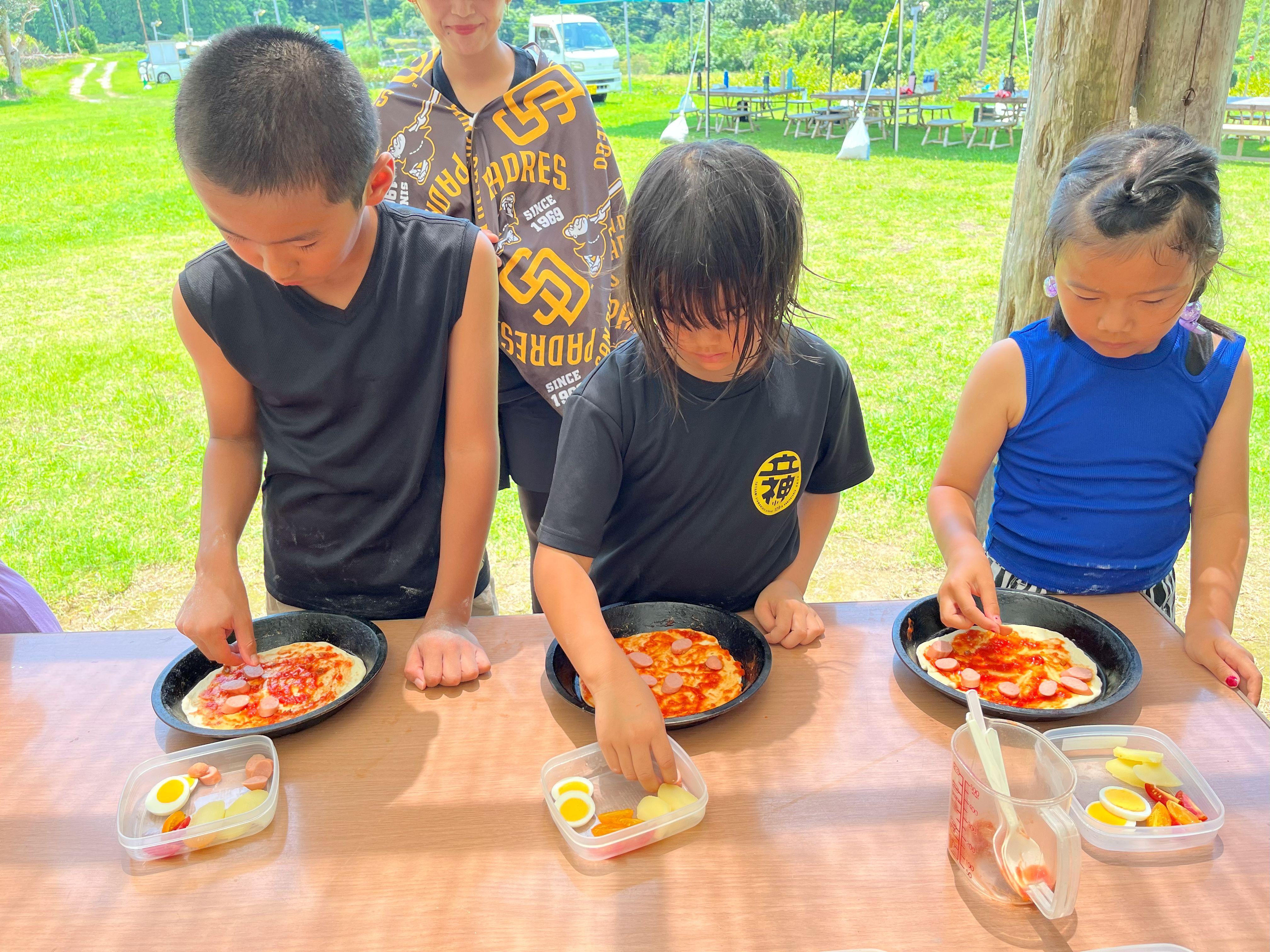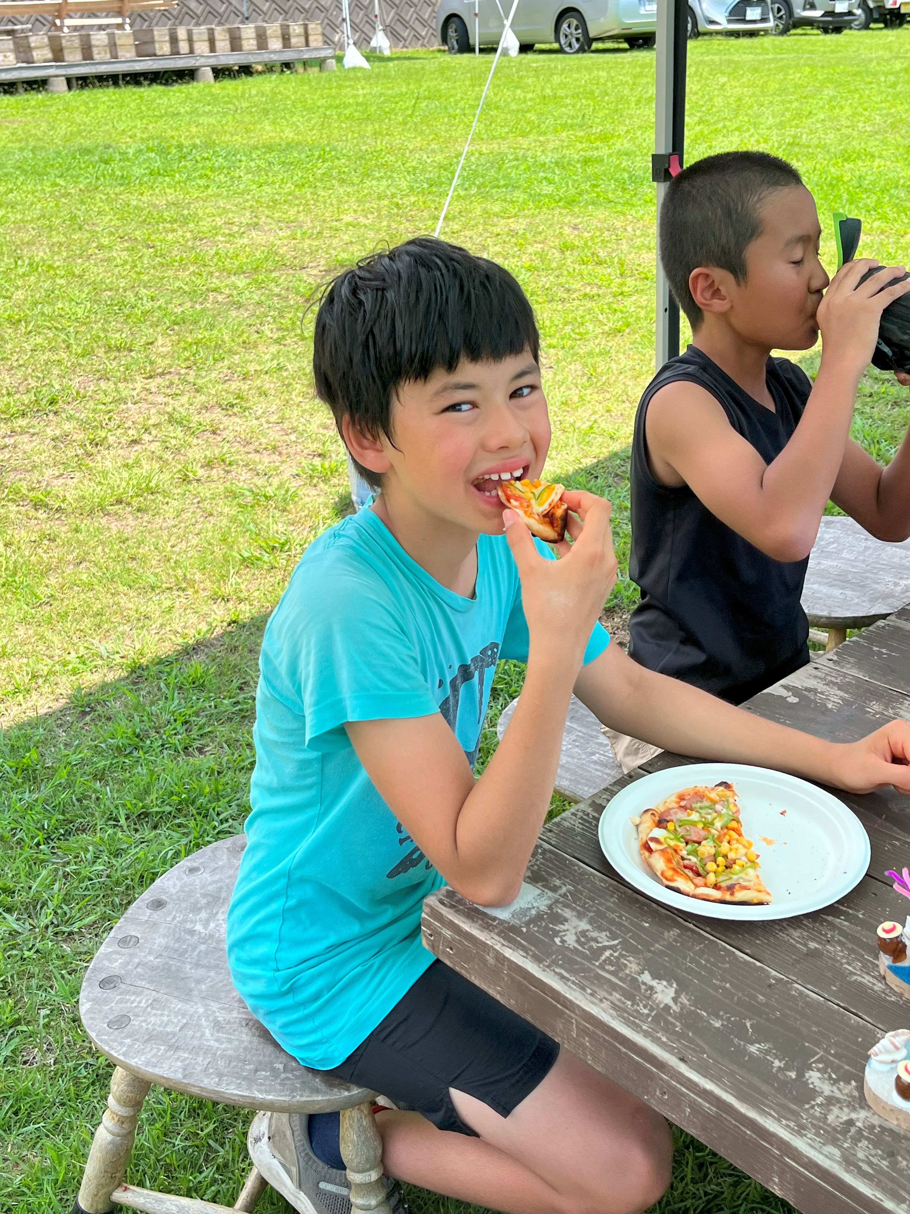 工作(メモスタンドづくり)や水遊び、ピザ焼き体験をしました。