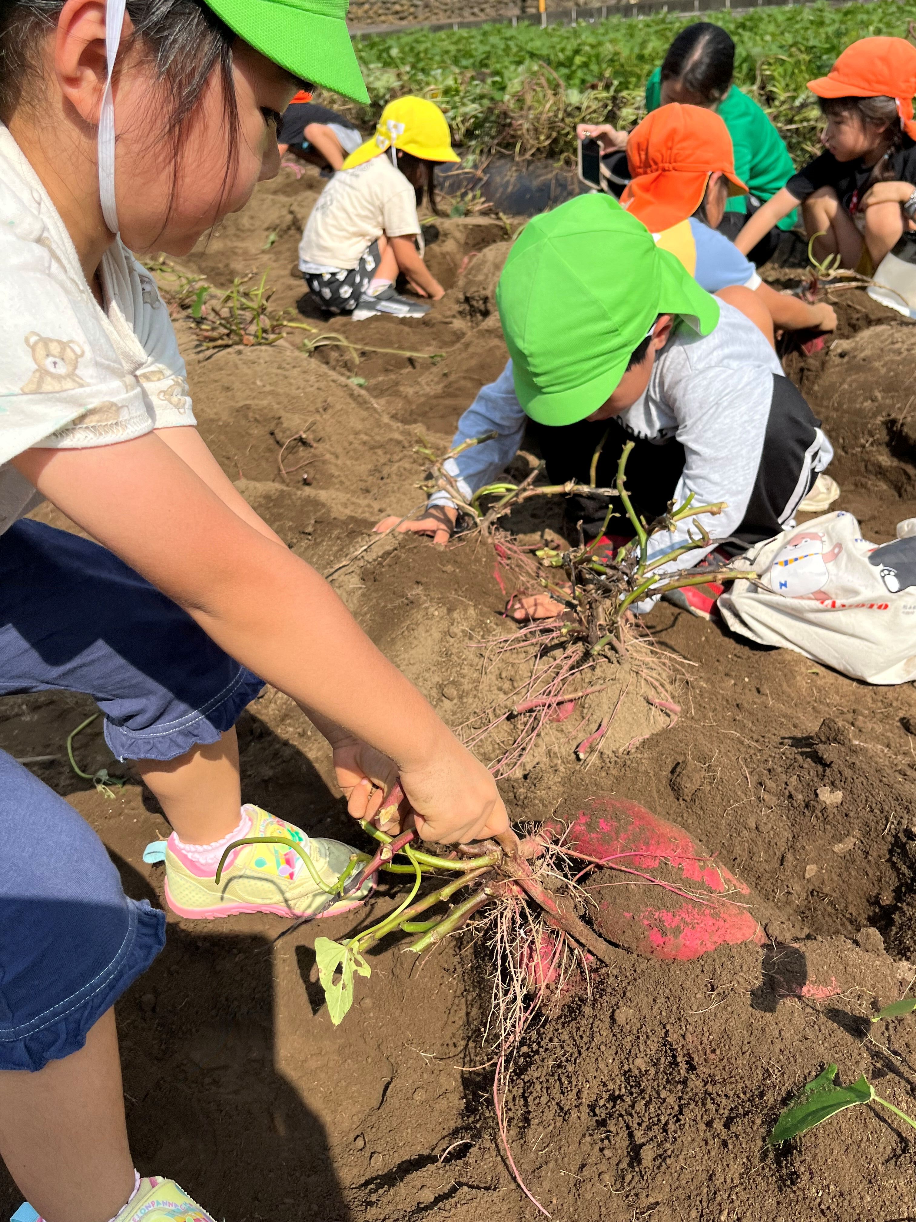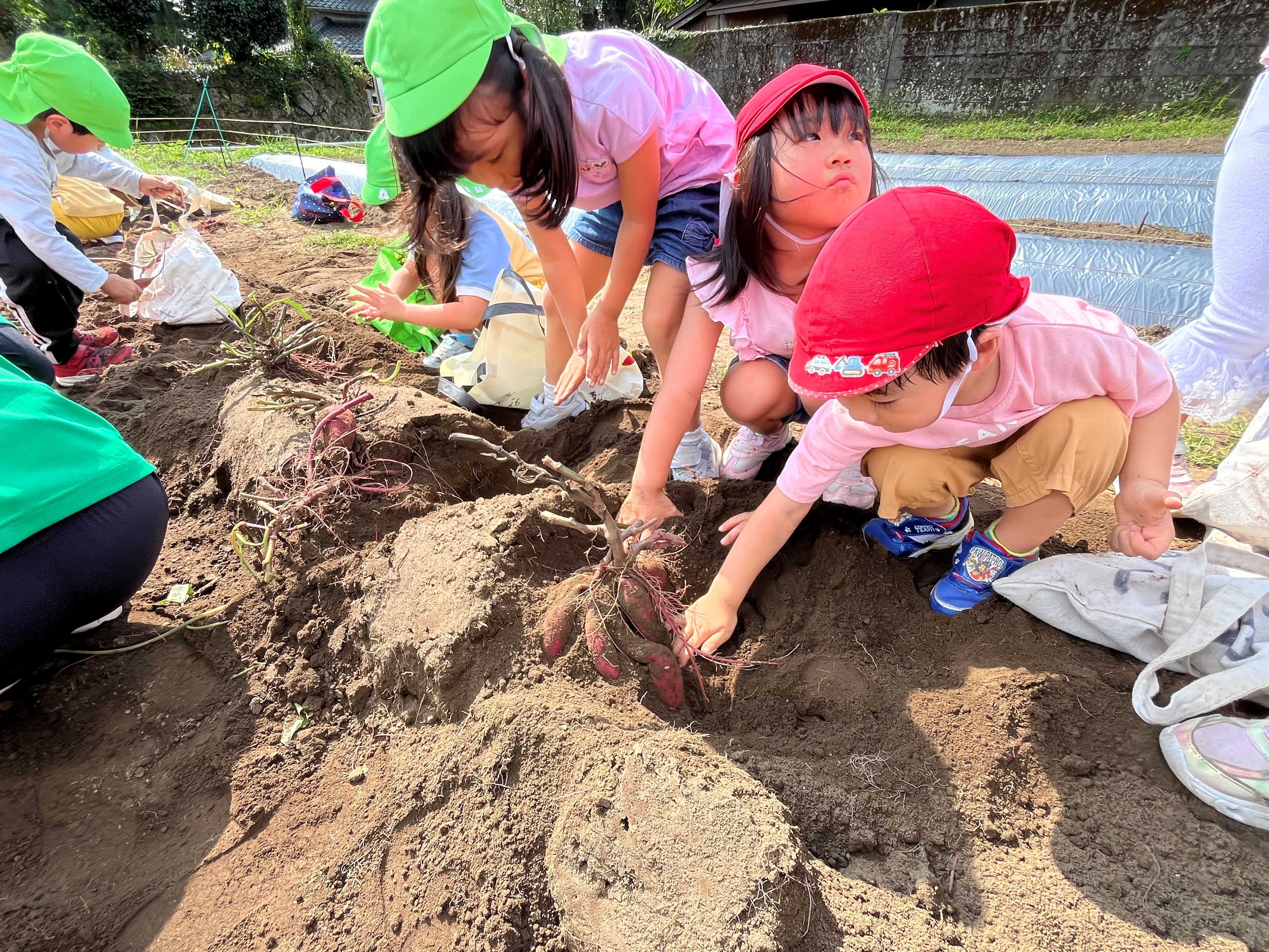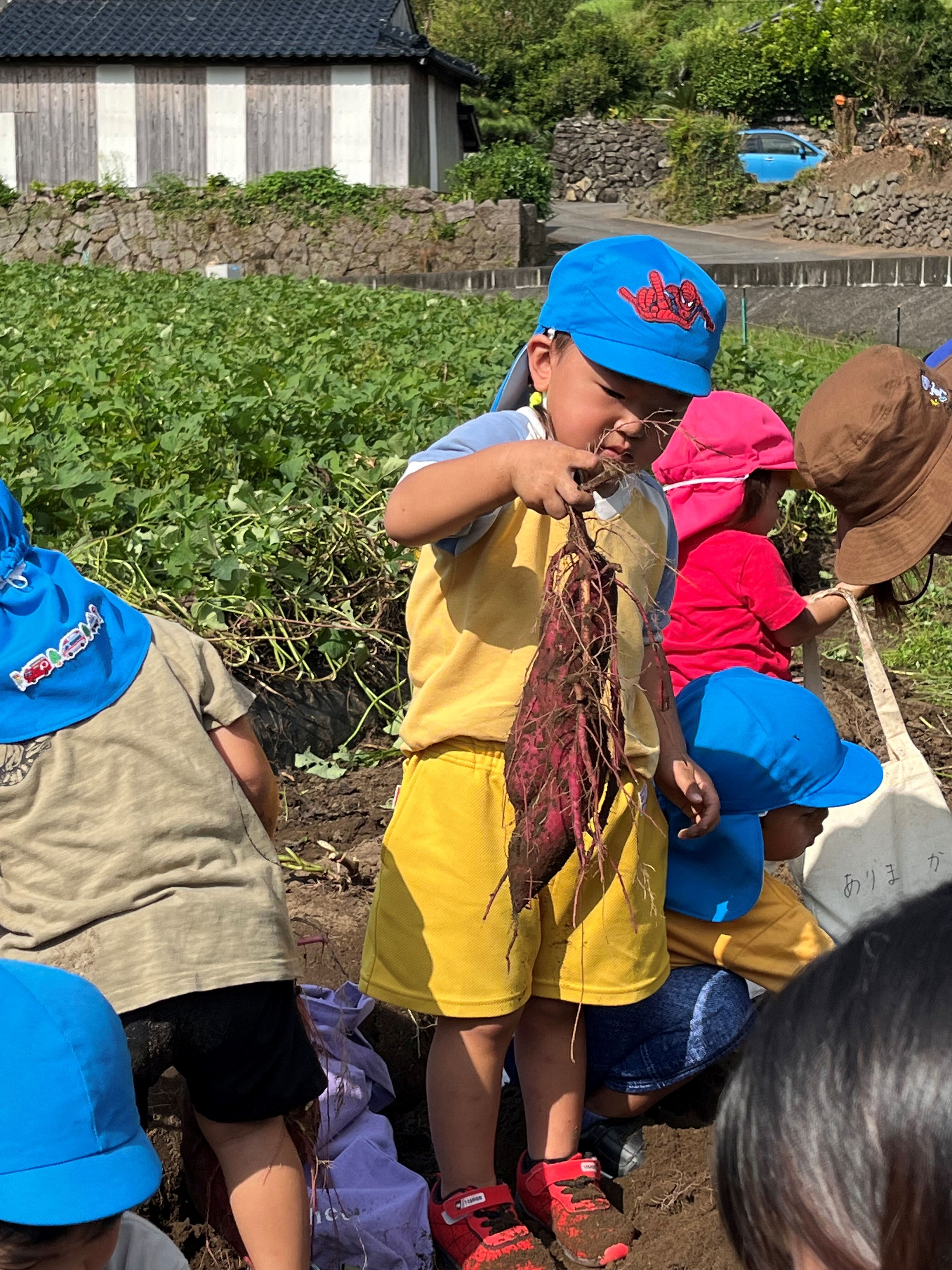 10月8日(水)、枕崎幼稚園のみんながさつまいも収穫を行いました!今年のさつまいもは、とっても大きい!でした。大きなさつまいもをたくさん収穫しました(^^)