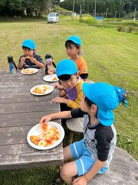 広場遊びや工作(ハロウィンのメモスタンドづくり)、ピザ焼き体験、さつまいも収穫をしました(^^)