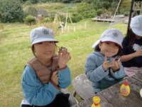 広場遊びや旗山に登って夏との違いを探したり、木の実などの秋を集めました。どんぐり工作もしました(^^)