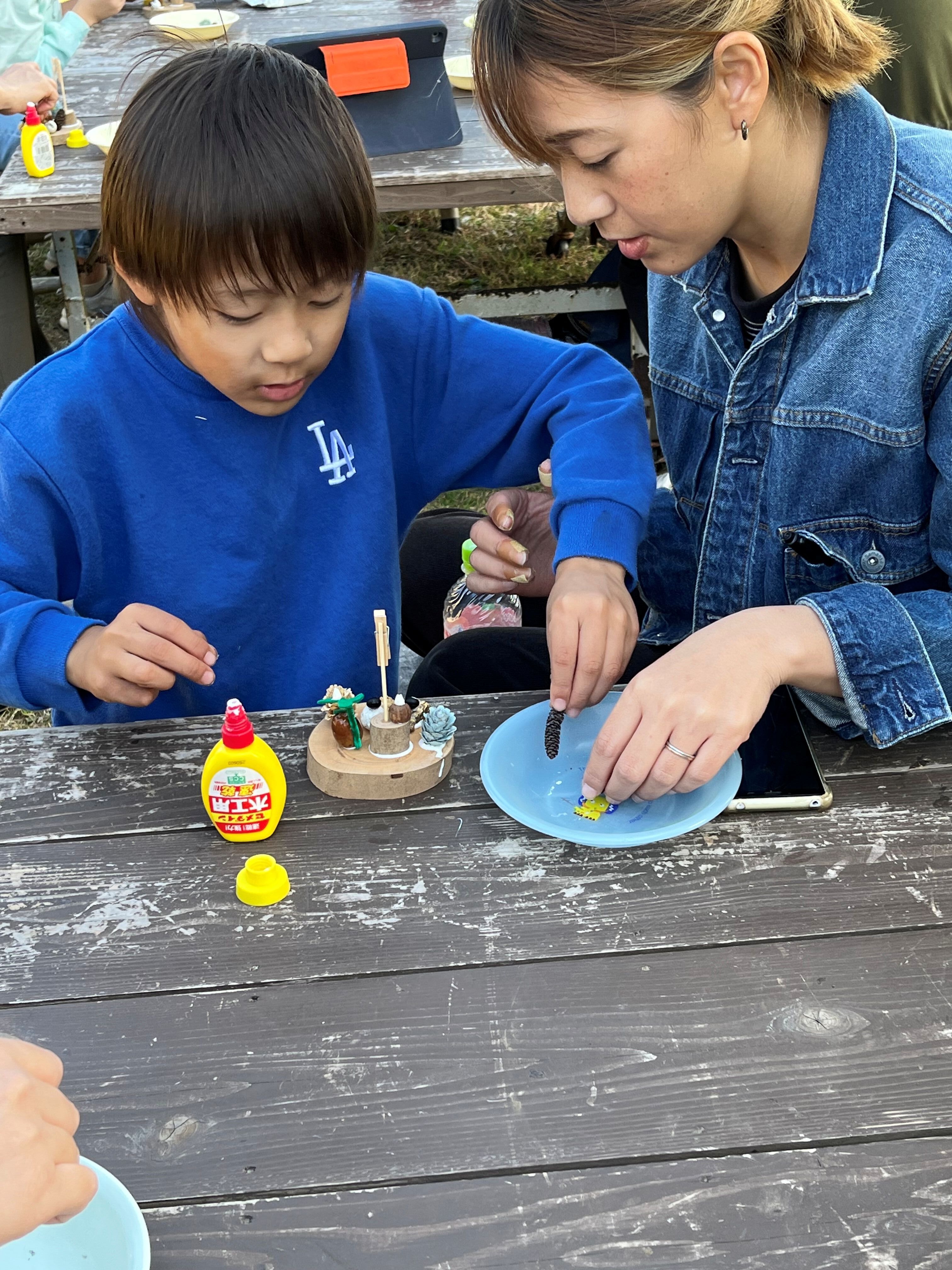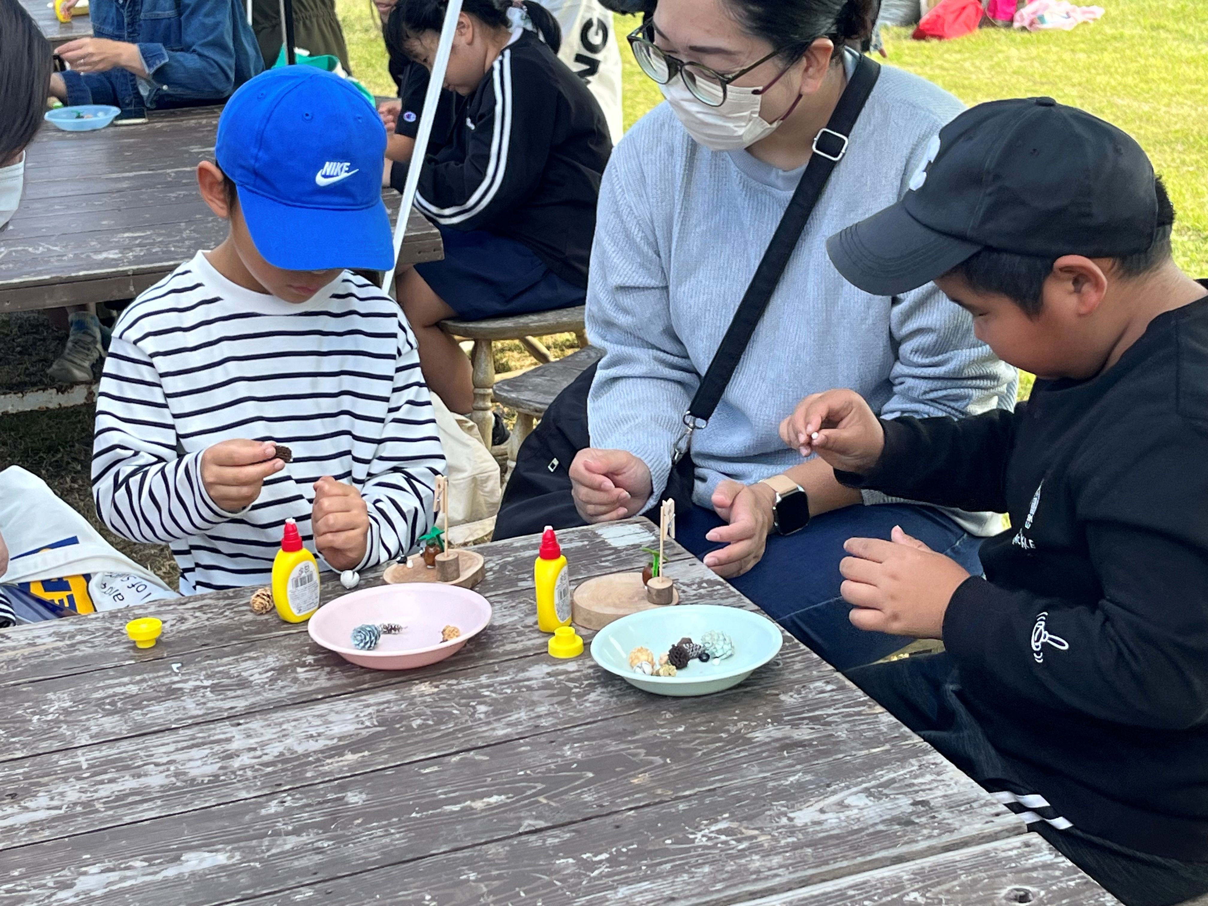 親子で一緒にメモスタンドづくりをしました。今回、初めて自然花に来た子がほとんどでした。