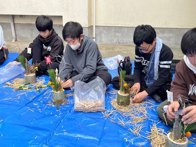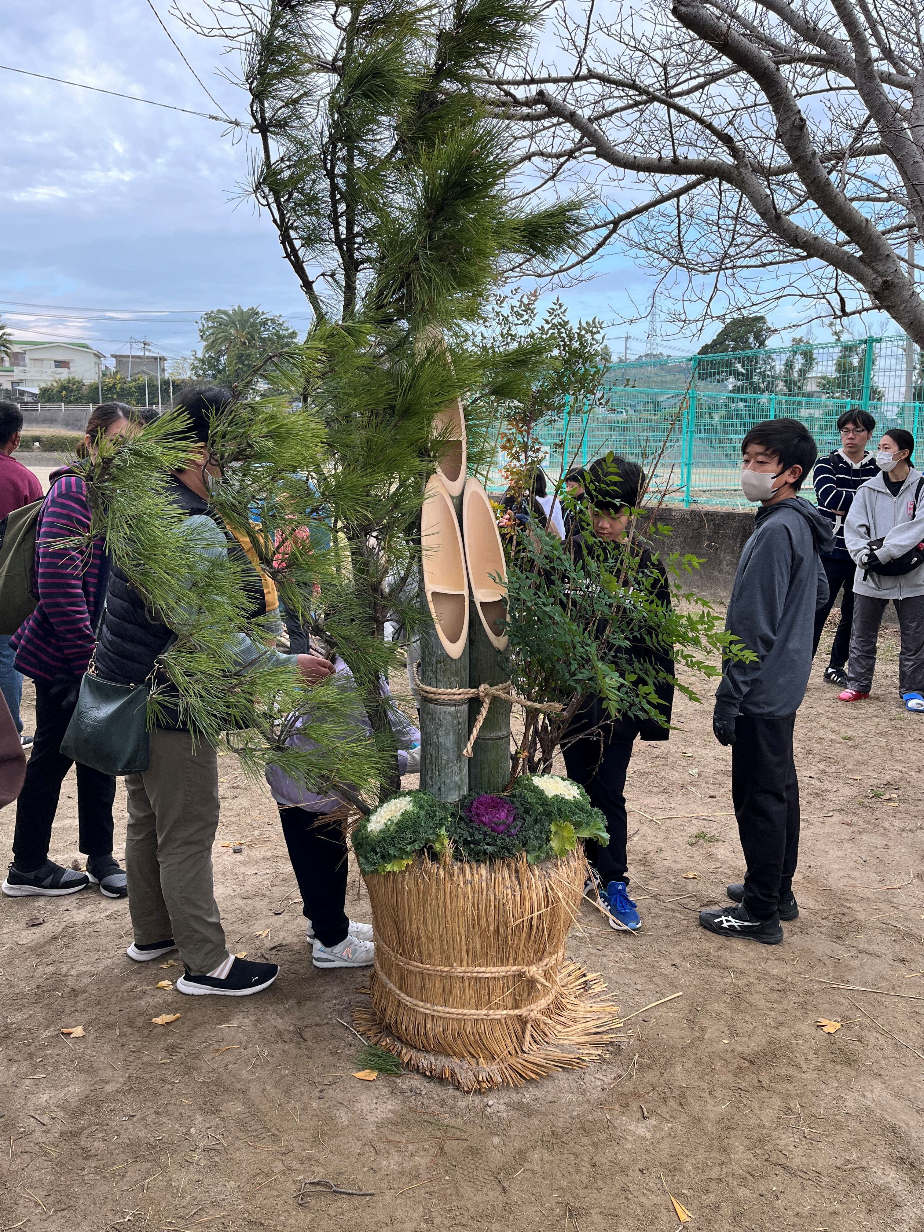 さて、12月20日(土)、枕崎小学校にて校門に飾る門松づくりがありました。