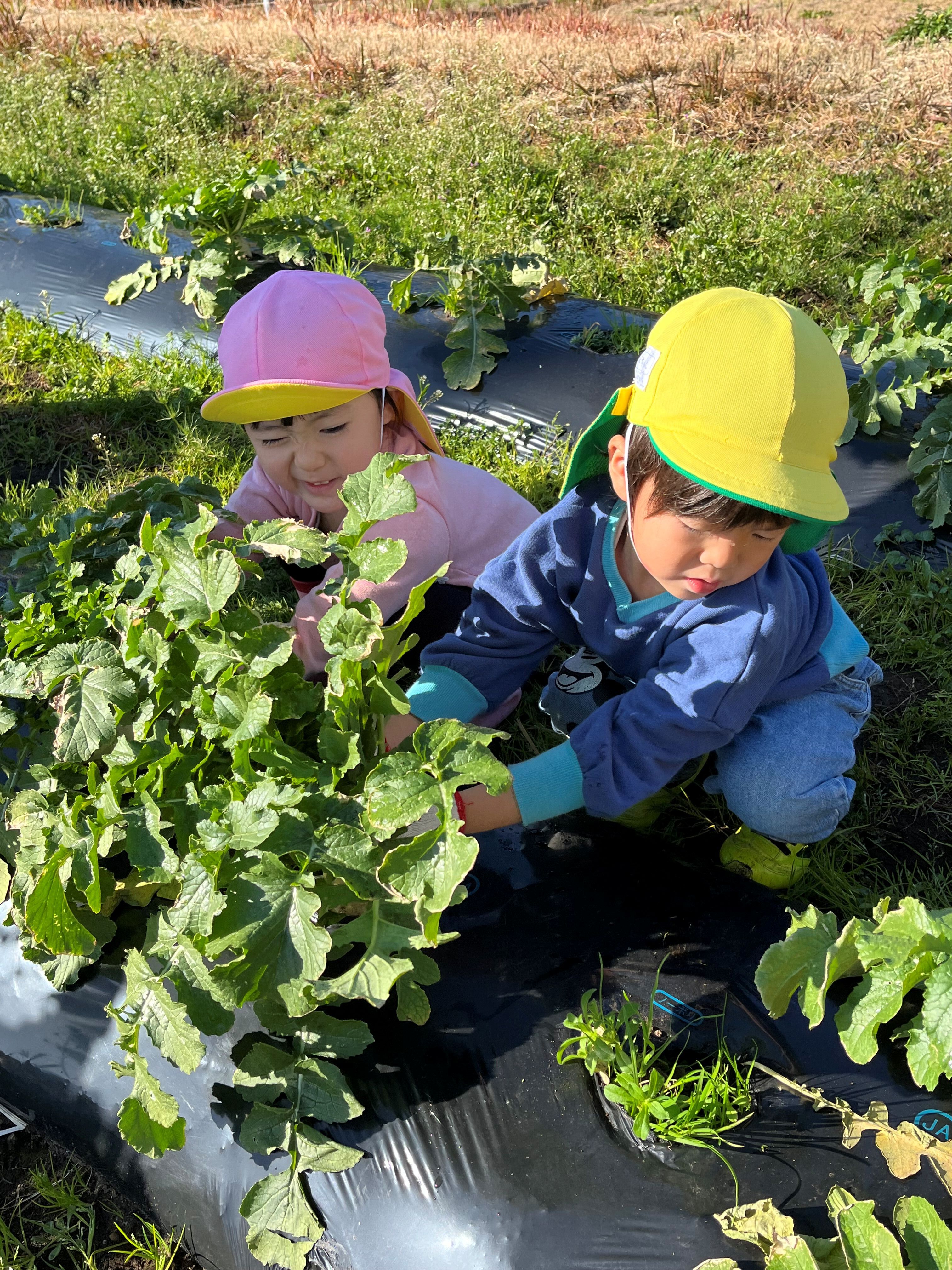 1月16日(金)、長野幼稚園のみんなが、冬野菜収穫を行いました。