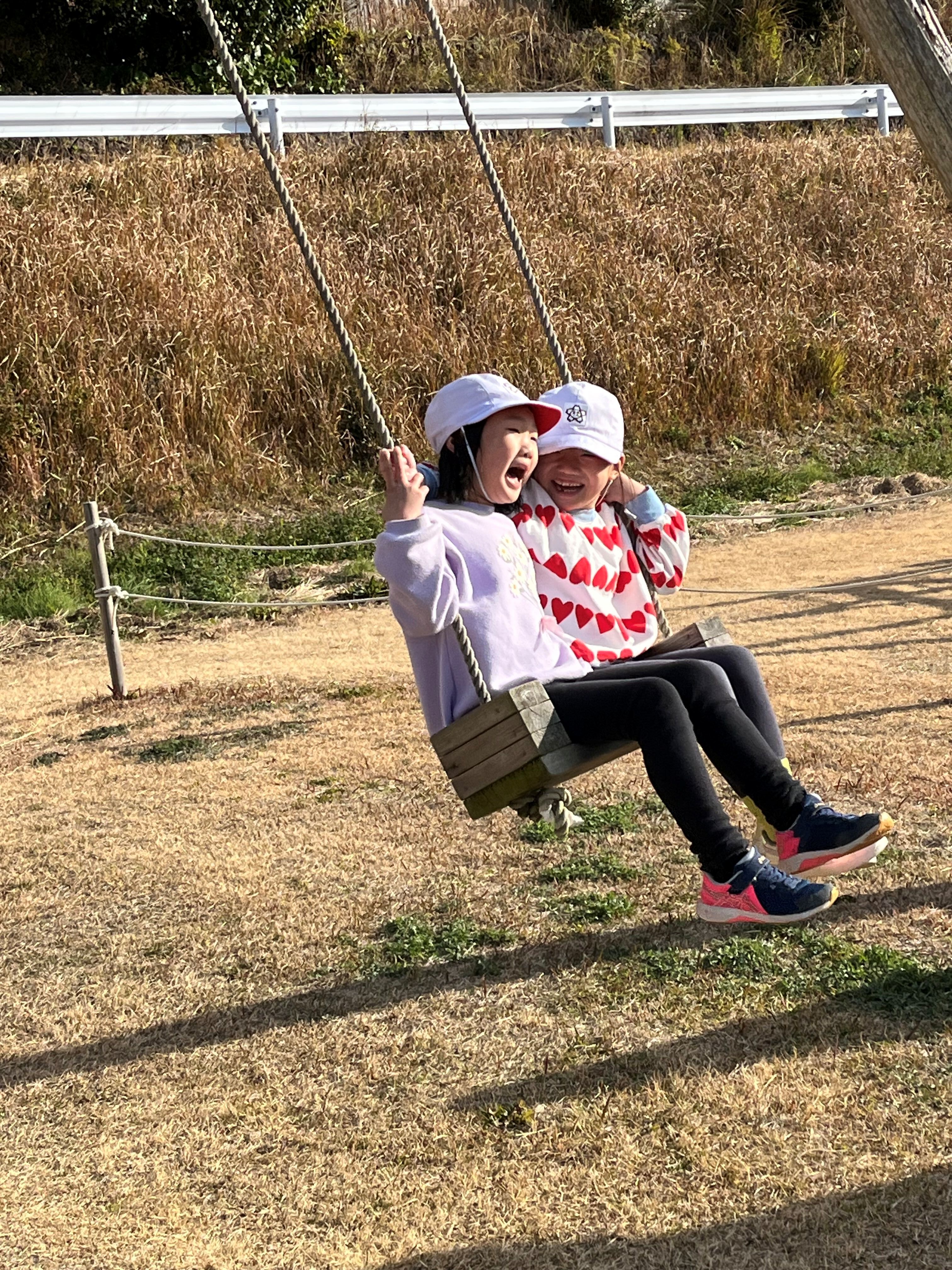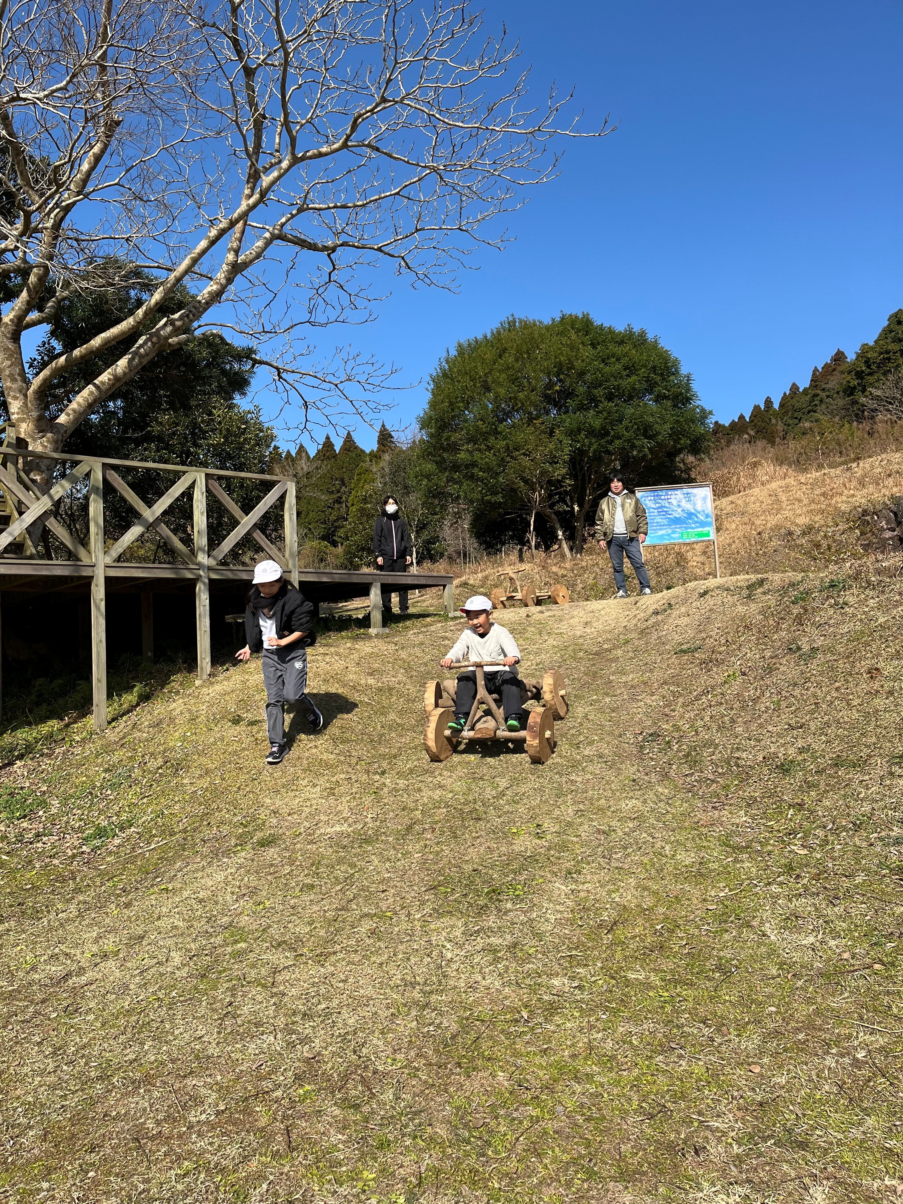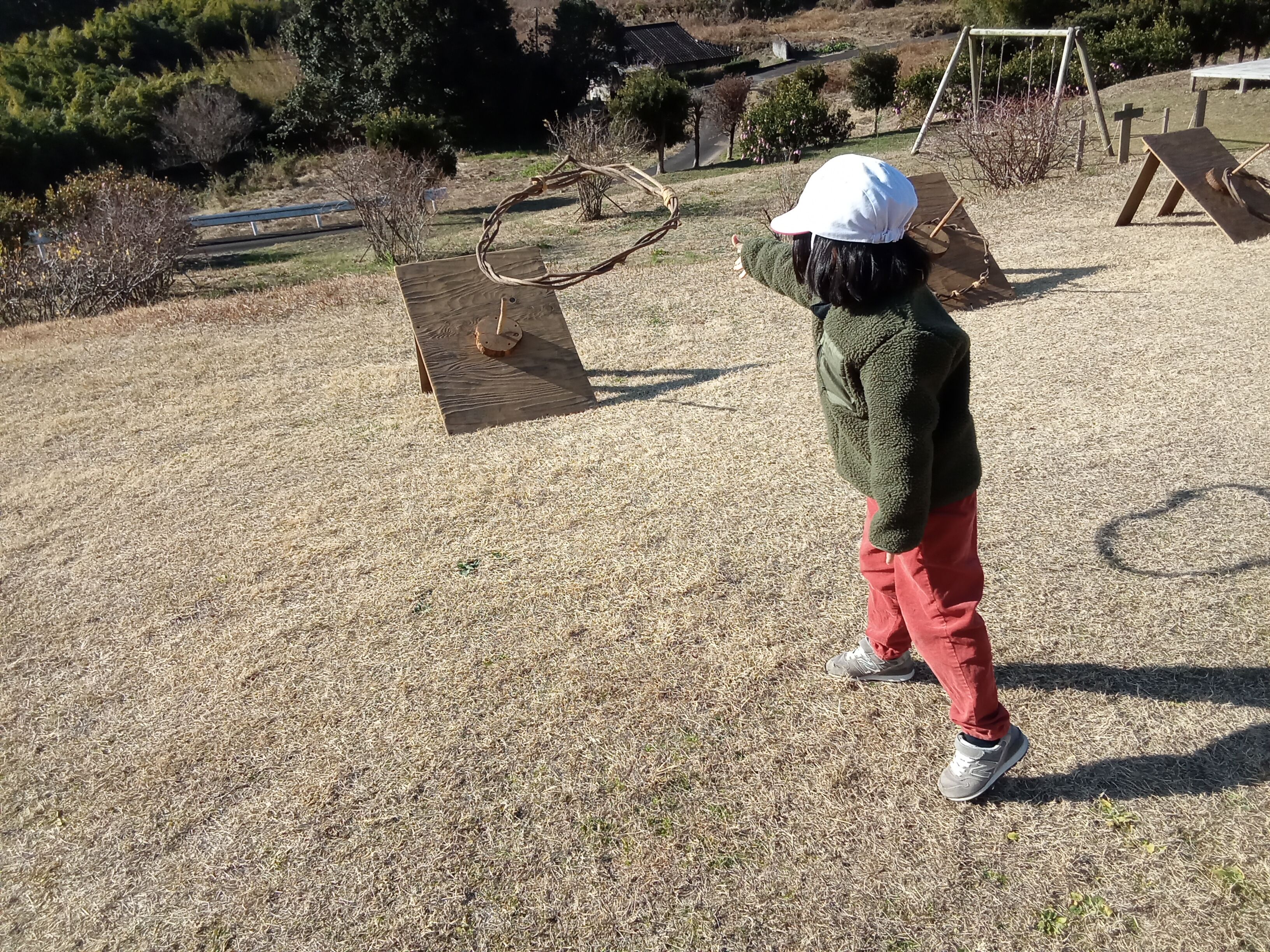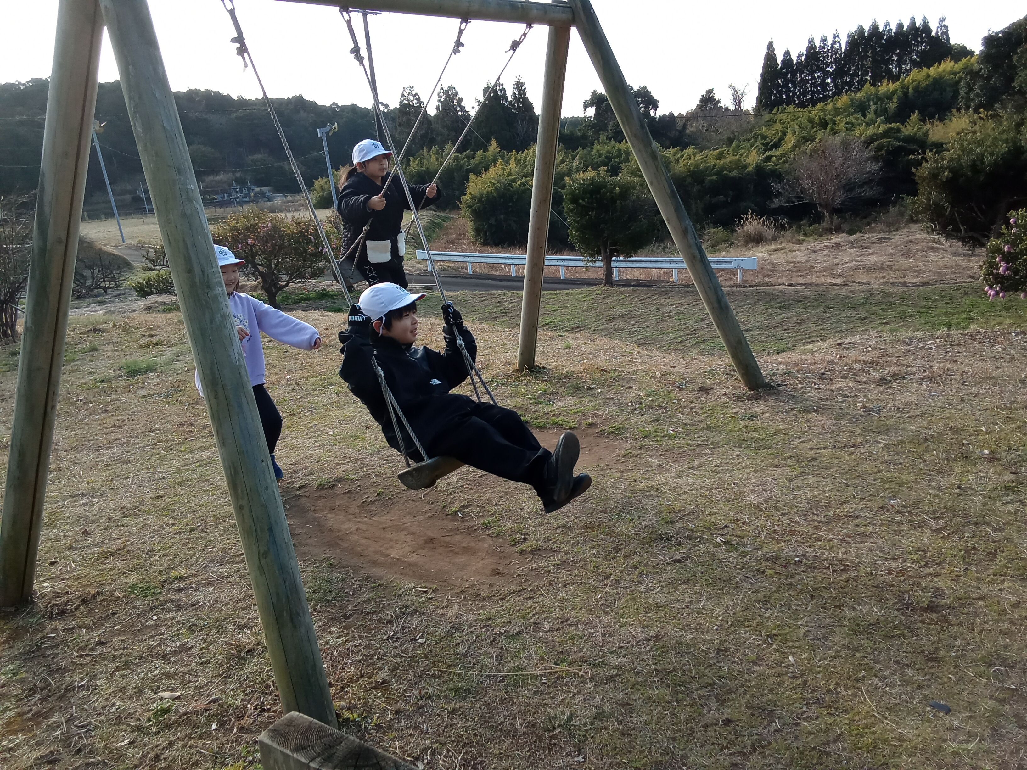 冬さがしの学習できたみなさん。夏、秋の様子とどこが変わった?と広場の様子を見て確認した後は、広場遊びをしました。