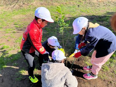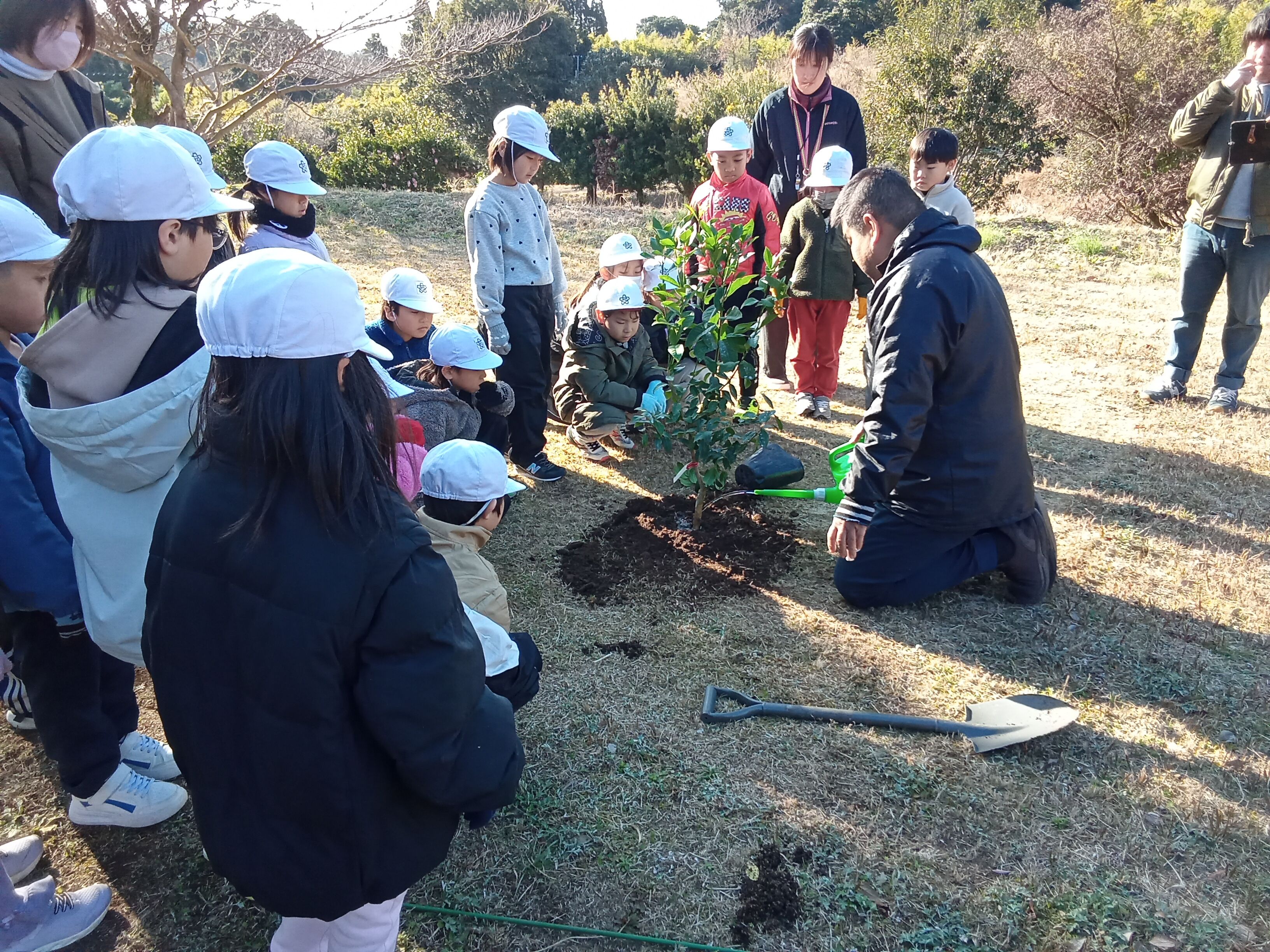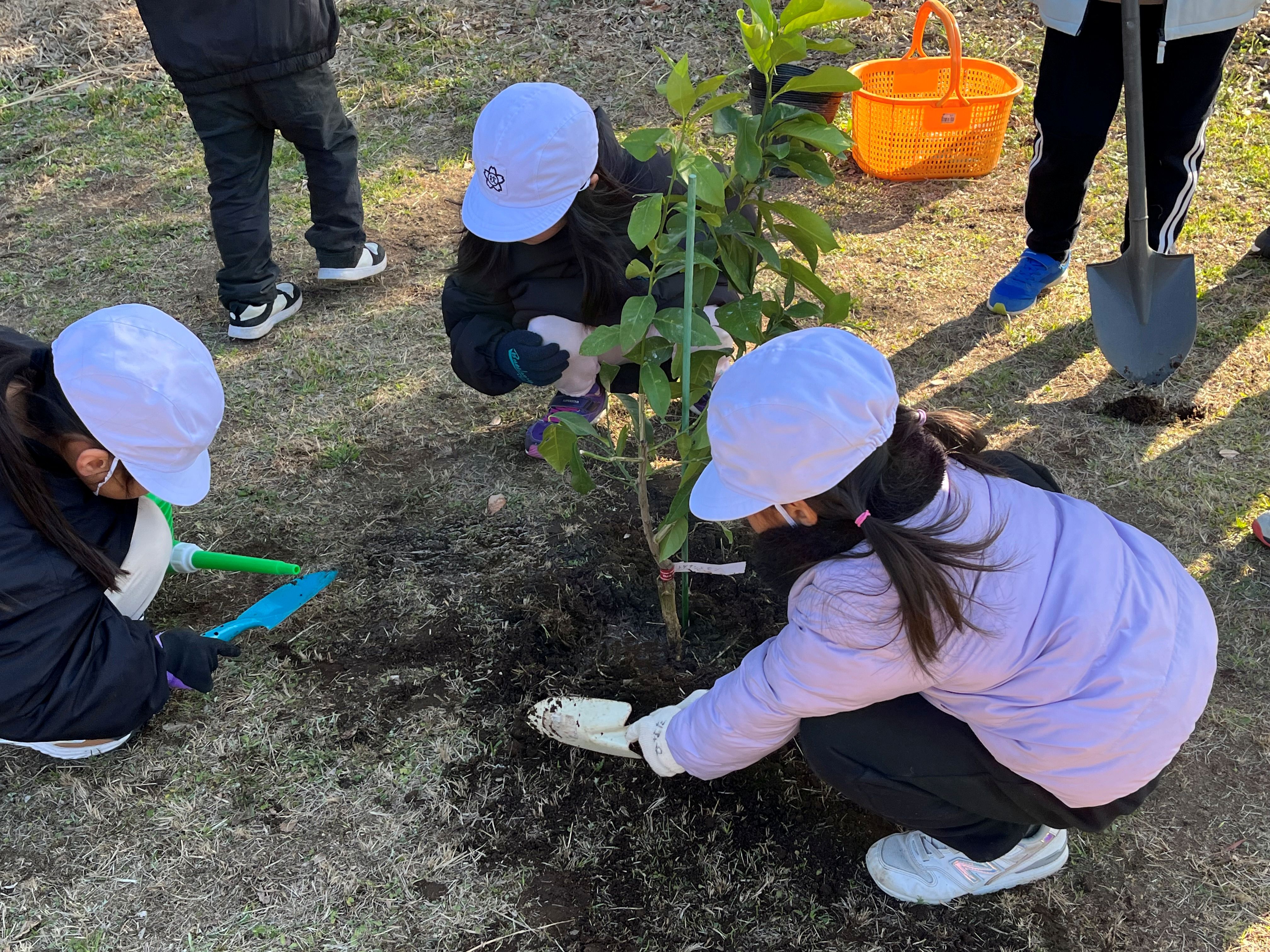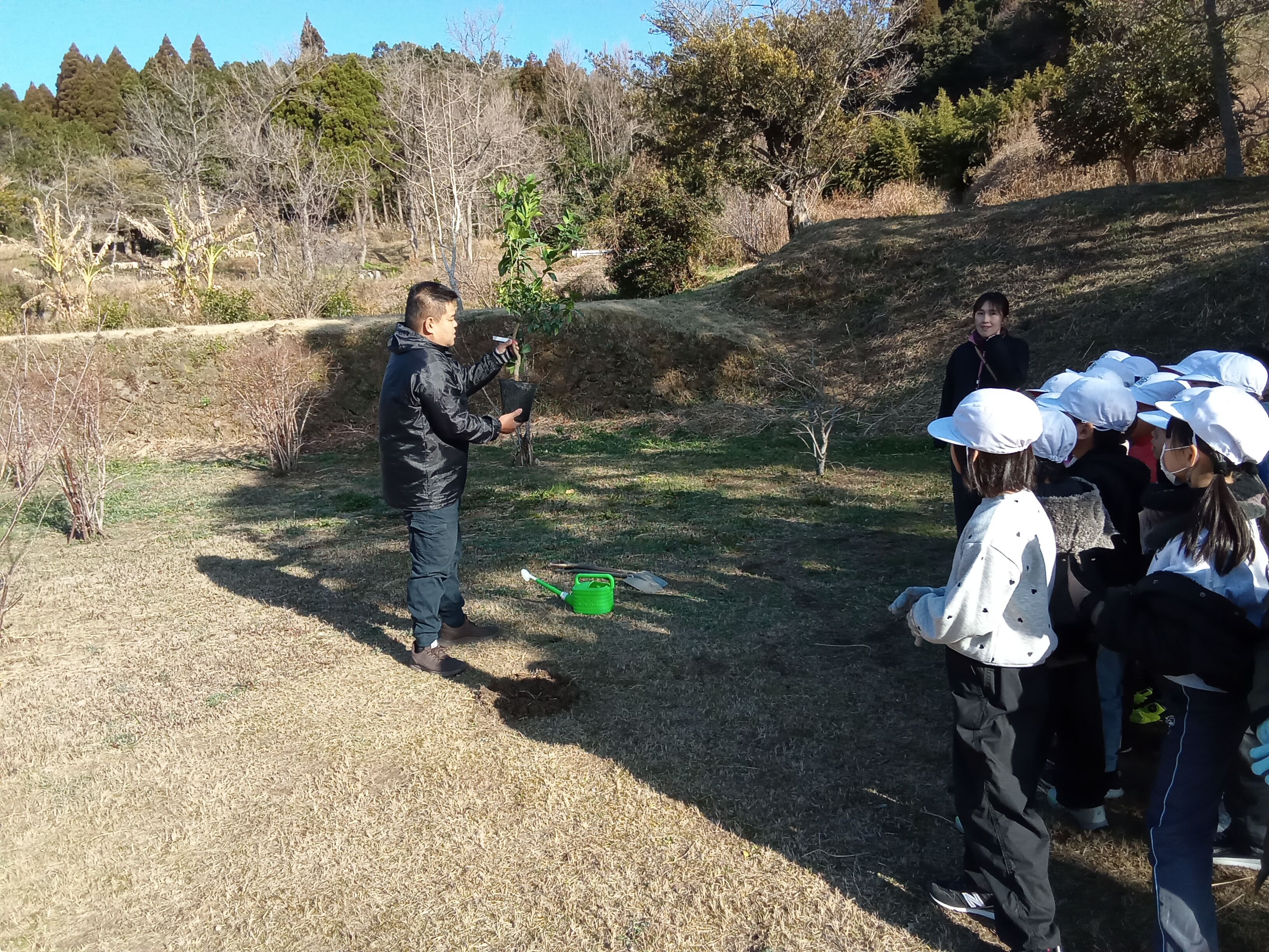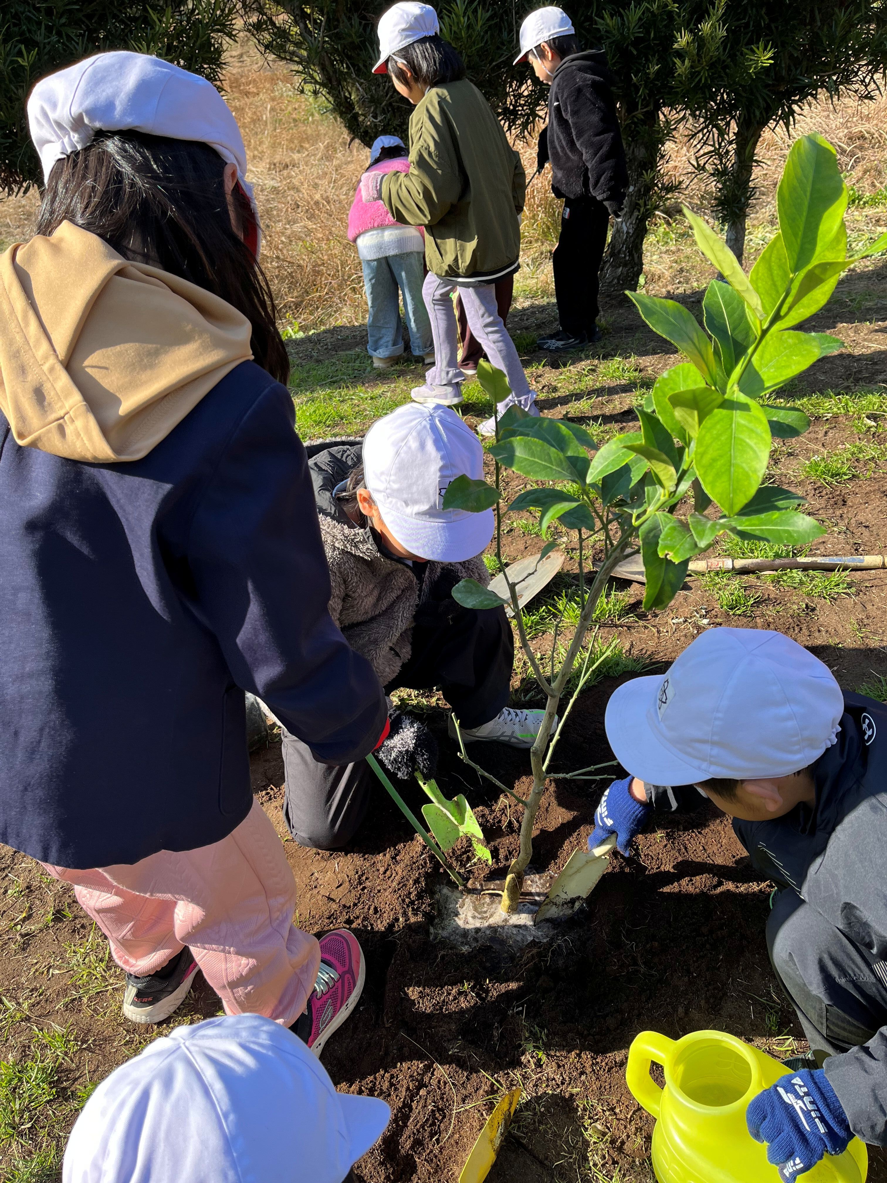 今回は、1組のみなさんにはレモンとゆずの苗木を植樹してもらいました。(1月25日に実施予定だった親子体験が強風でできなかった為)