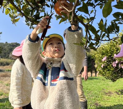 2月16日(月)、長野幼稚園の年長さんが、タンカン収穫を行いました(^^)