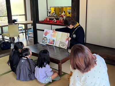 枕崎市立図書館の朝田館長さんには、おひなさまにちなんだ絵本の読み聞かせをしていただきました(^^)