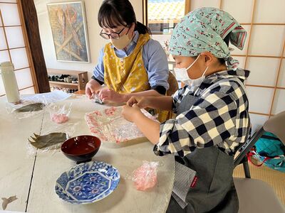 出来上がったさくらもちは、1つずつ試食して残りはお家へお持ち帰りとなりました。今度は、お家で作ってみてくださいね!