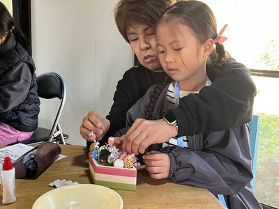 2月23日(月・祝)、「さくらもち&おひさなまづくり」体験を行いました。今回は、自然花では珍しく、屋内での体験でした。