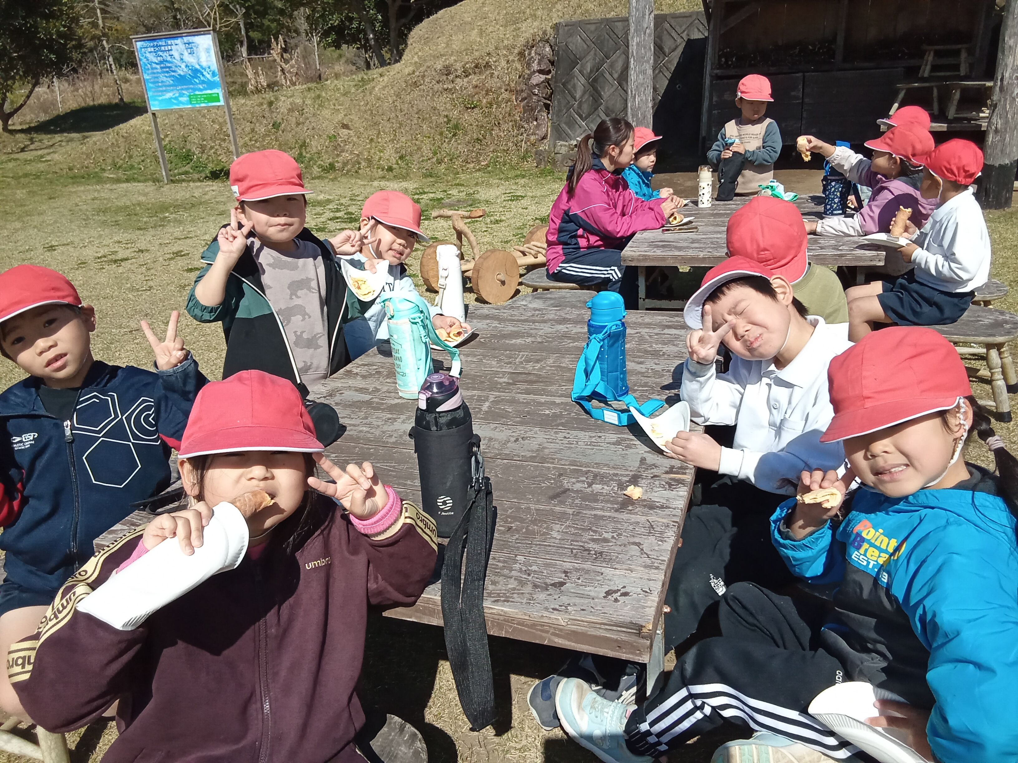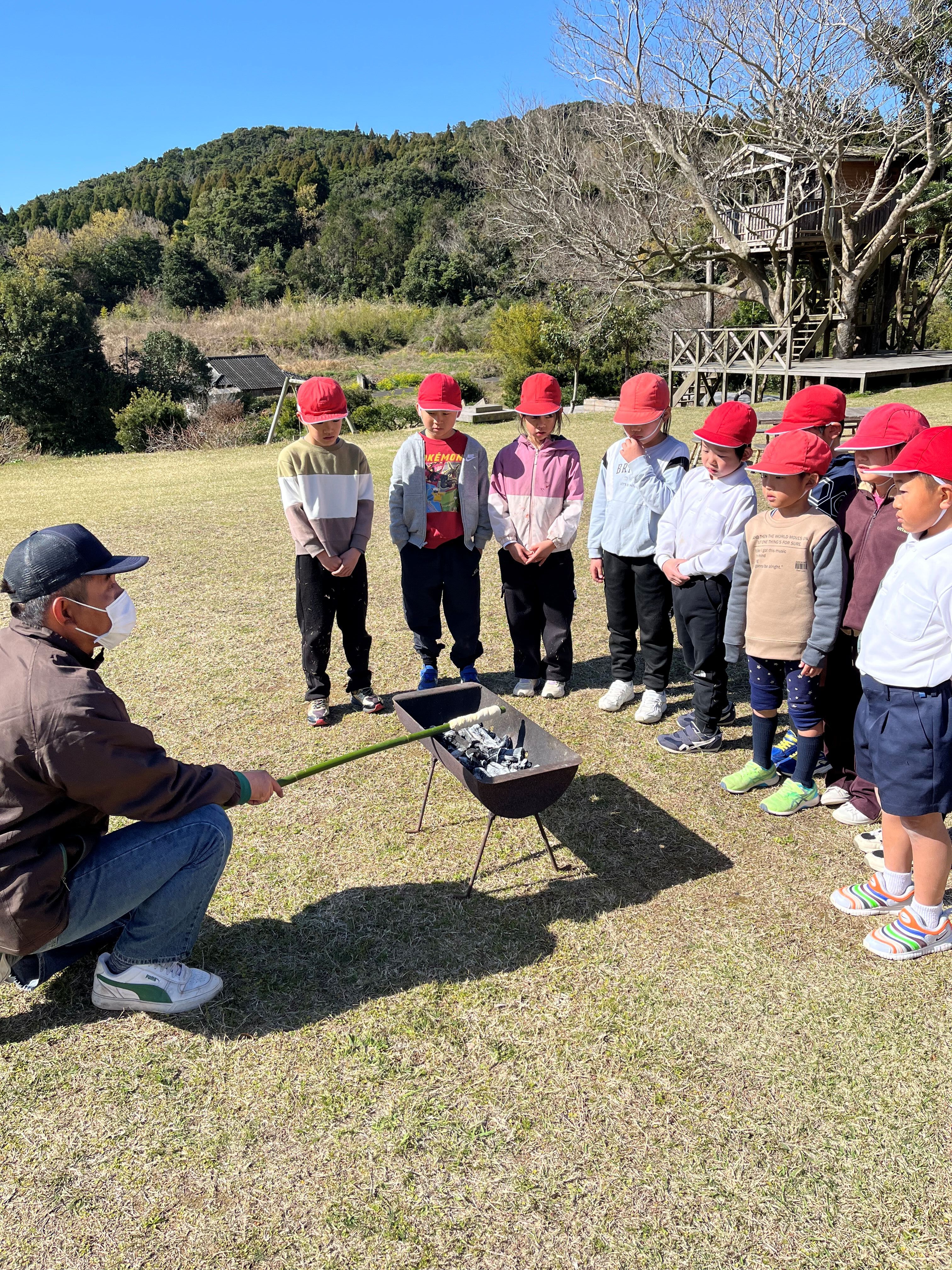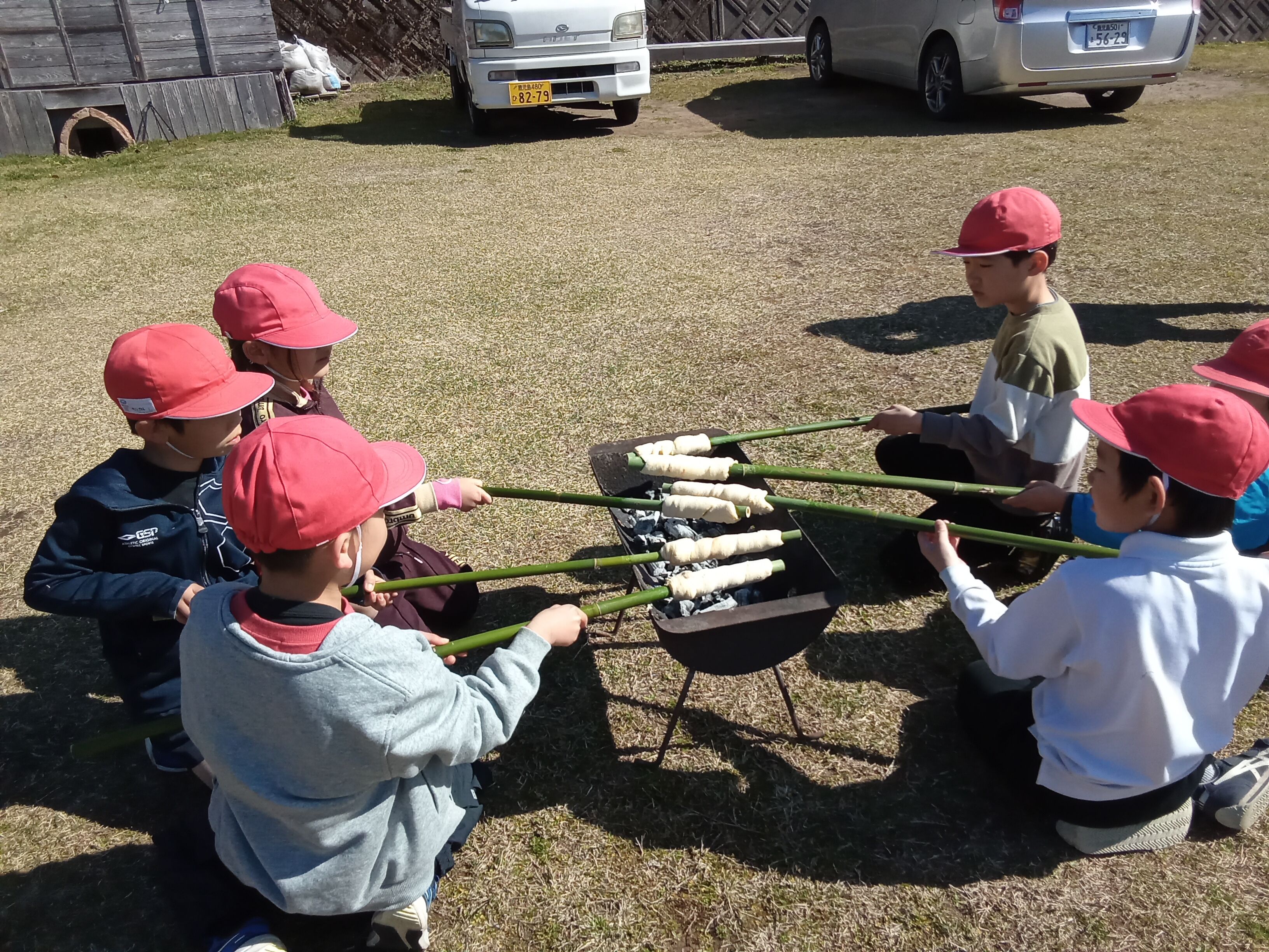 くるくるパン焼き体験もしました。1年生で自然花に来るのは、今回が最後でした。みんなで仲良く過ごしていました。