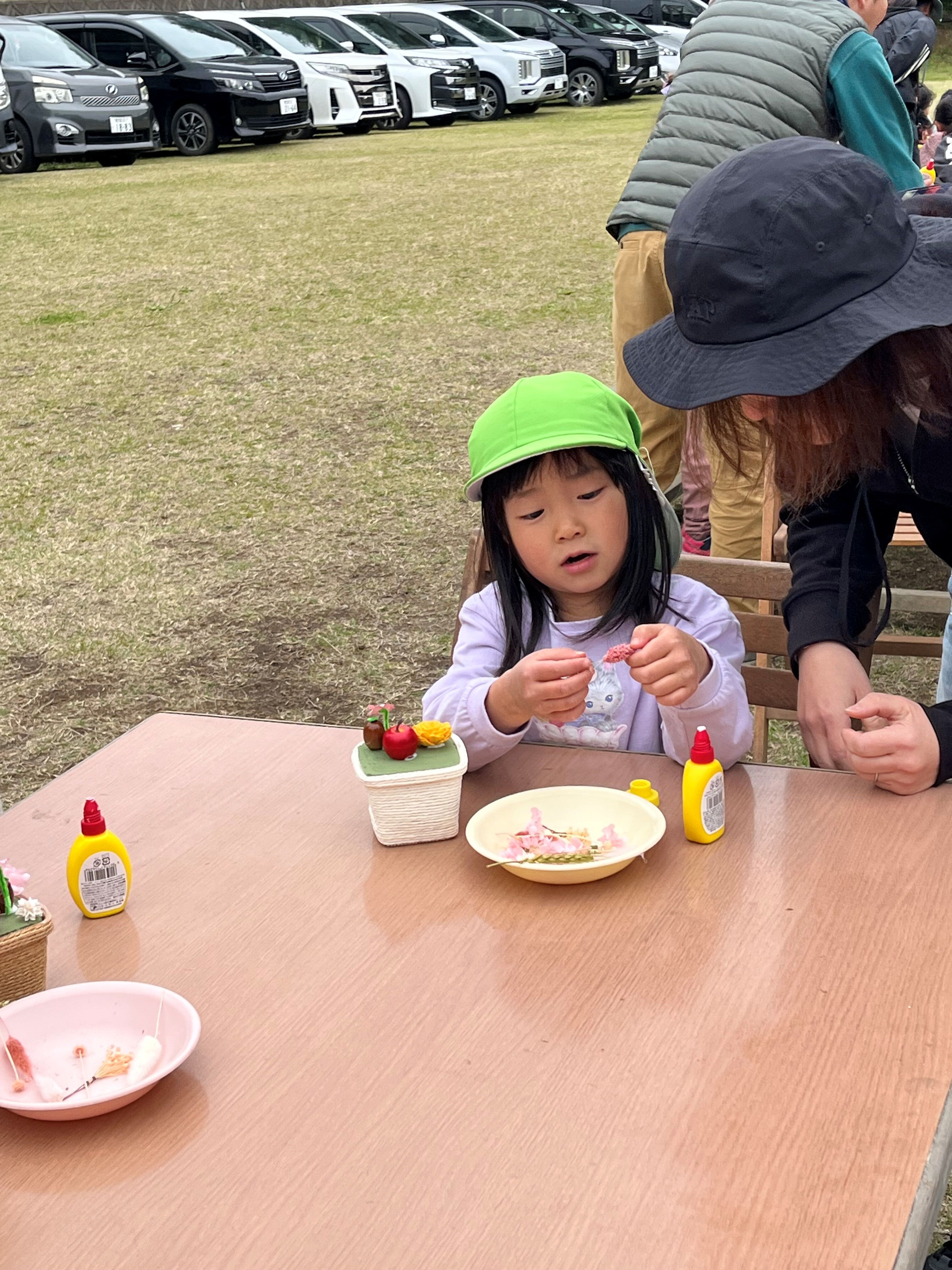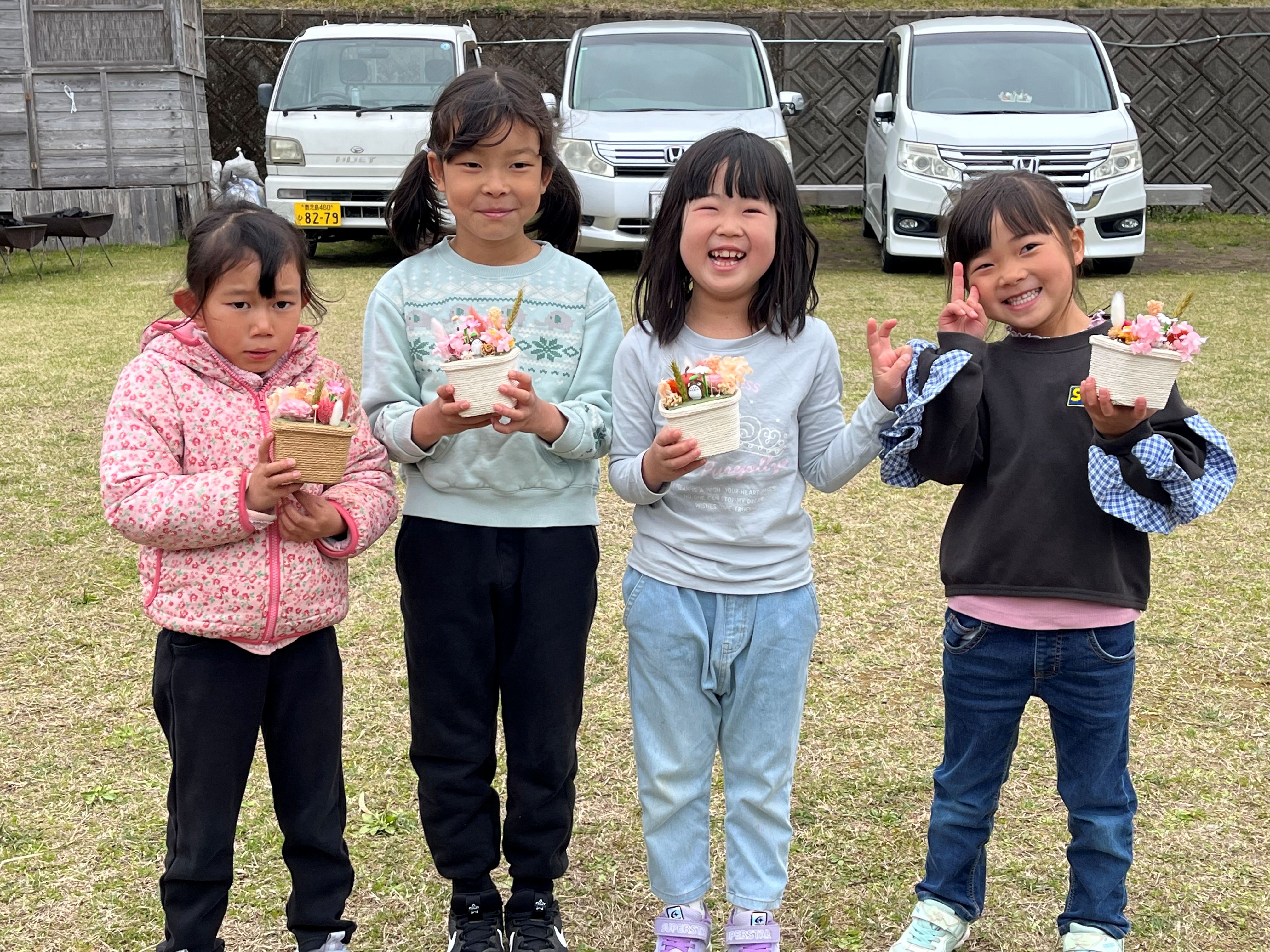 3月21日(土)、お隣の南九州市にあるおののもりこども園のみなさんが、自然花で親子体験を行いました。