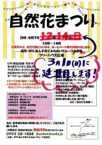 こんにちは。明日、開催予定されていた「自然花まつり」ですが、今日の夕方から雨&強風予報になってお...